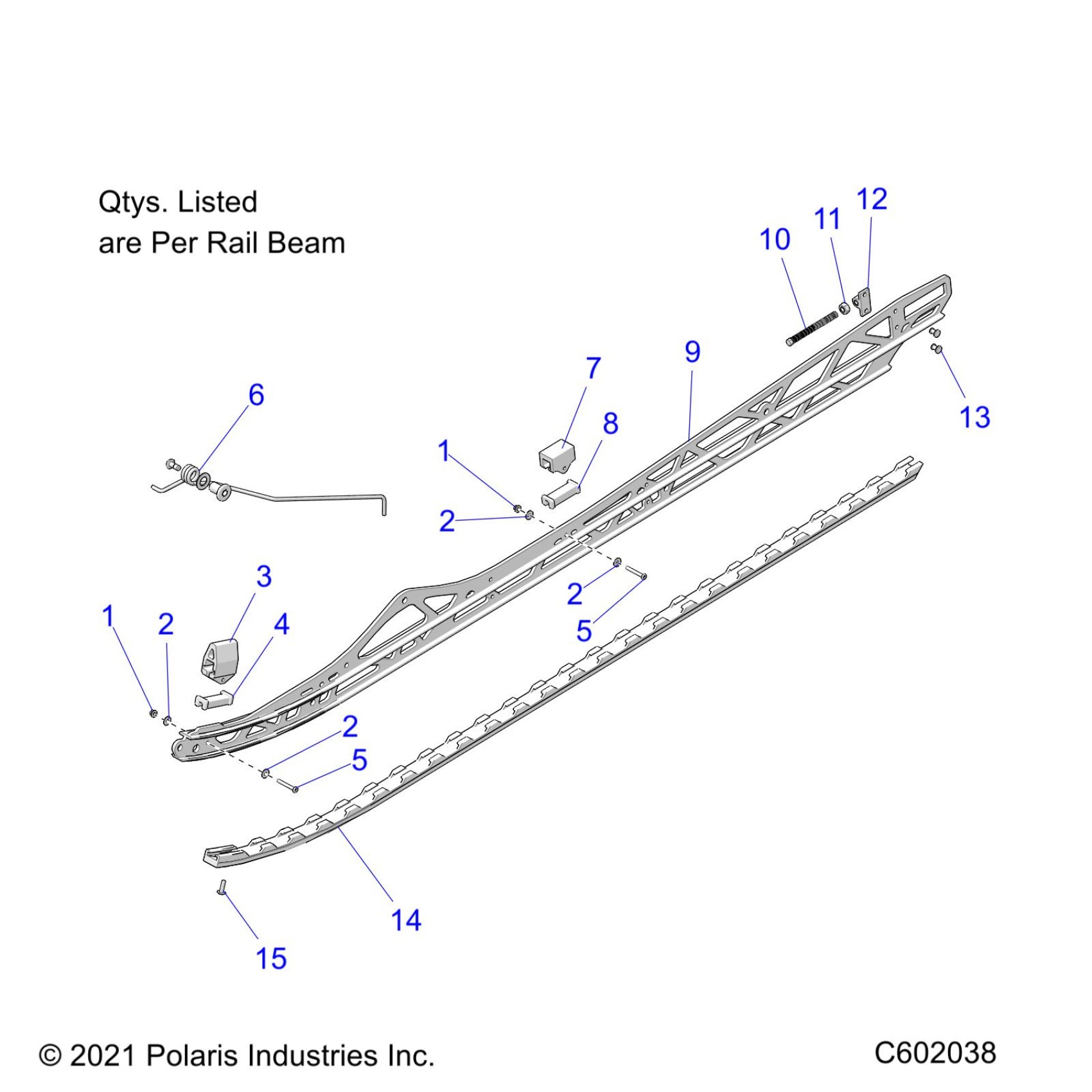 Polaris PATRIOT 9R RMK PRO SLASH 163/165 ALL OPTIONS (R01) - S23TGW9BS/TGM9BS SUSPENSION, RAIL BEAM MOUNTING, LH/RH, 165"/2.75" TRACK - S23TGM9BS (C602038) Diagram