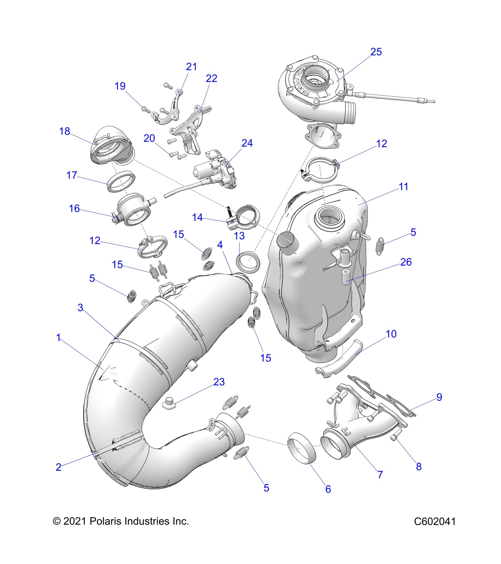 Polaris PATRIOT BOOST INDY VR1 129 ALL OPTIONS (R03) - S23TKV8MS ENGINE, EXHAUST SYSTEM AND TURBO ASM. - S23TKV8MS (C602041) Diagram