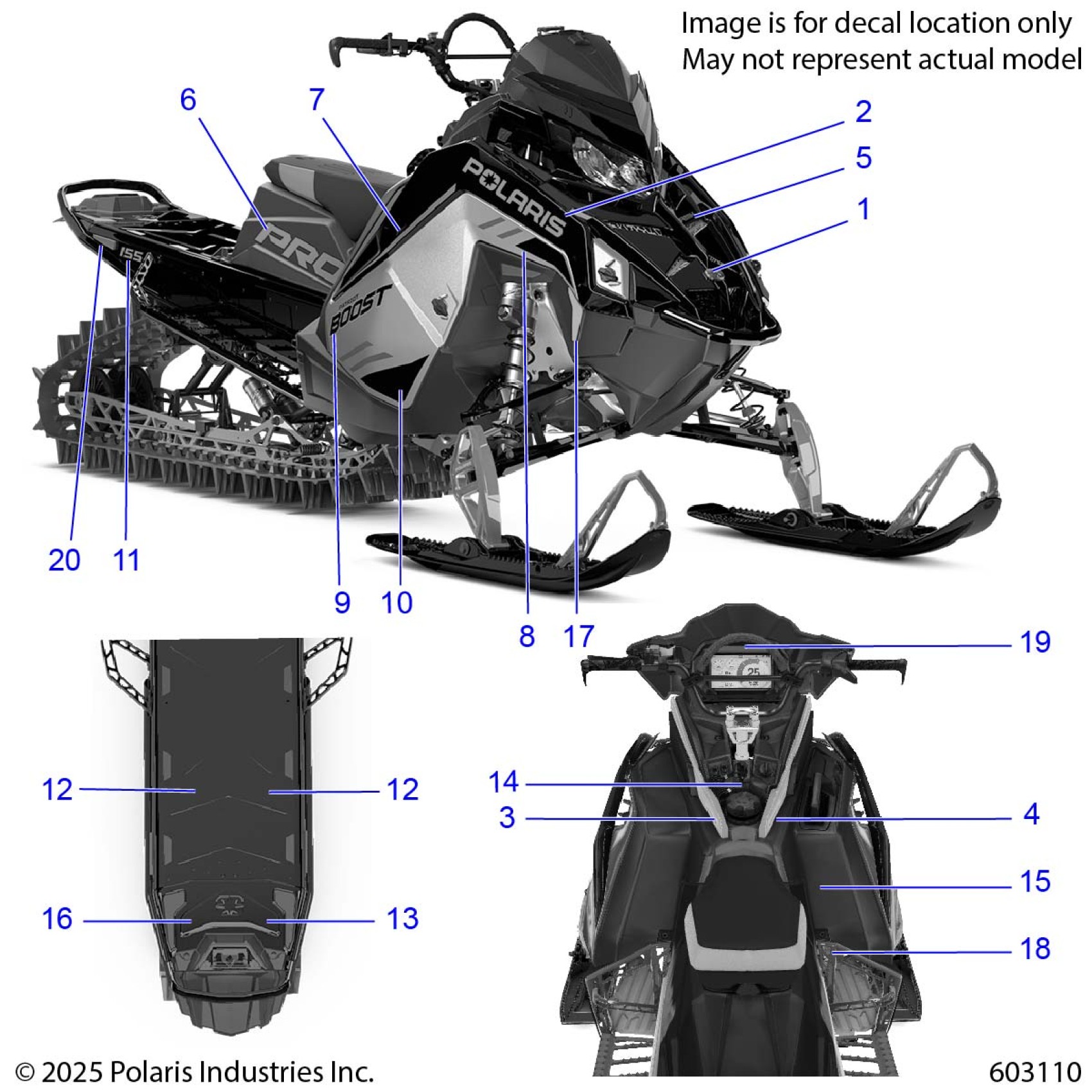 Polaris PATRIOT BOOST PRO RMK 165 ALL OPTIONS (R01) - S26TGM8MS BODY, DECAL, FROST SILVER SIDE PANEL W/BLACK TRIM - S26TGM8MS (603110) Diagram