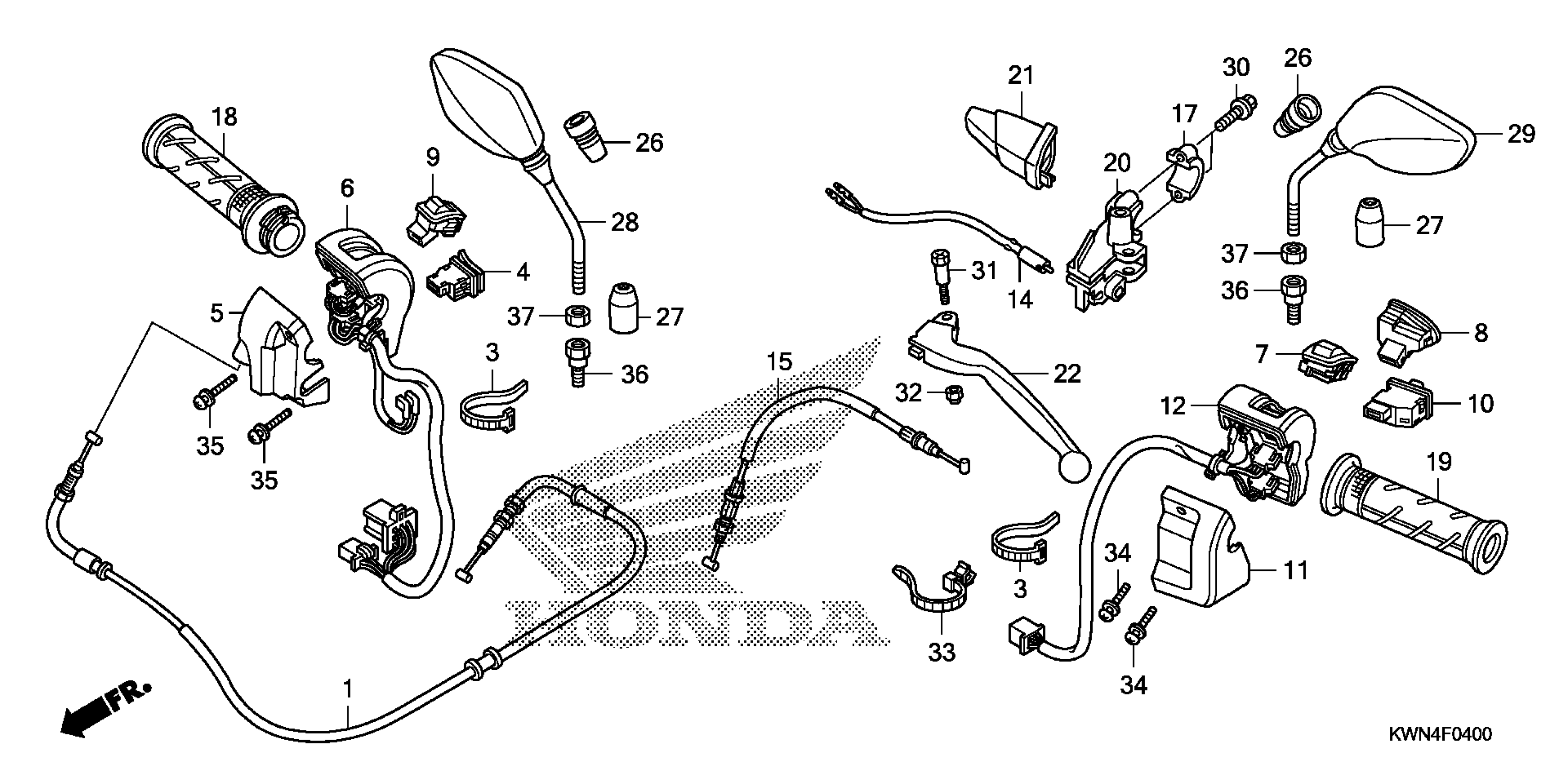 Honda PCX125A (11) PCX125, THA, VIN# MLHJF280-B5000001 HANDLE LEVER + SWITCH + CABLE Diagram