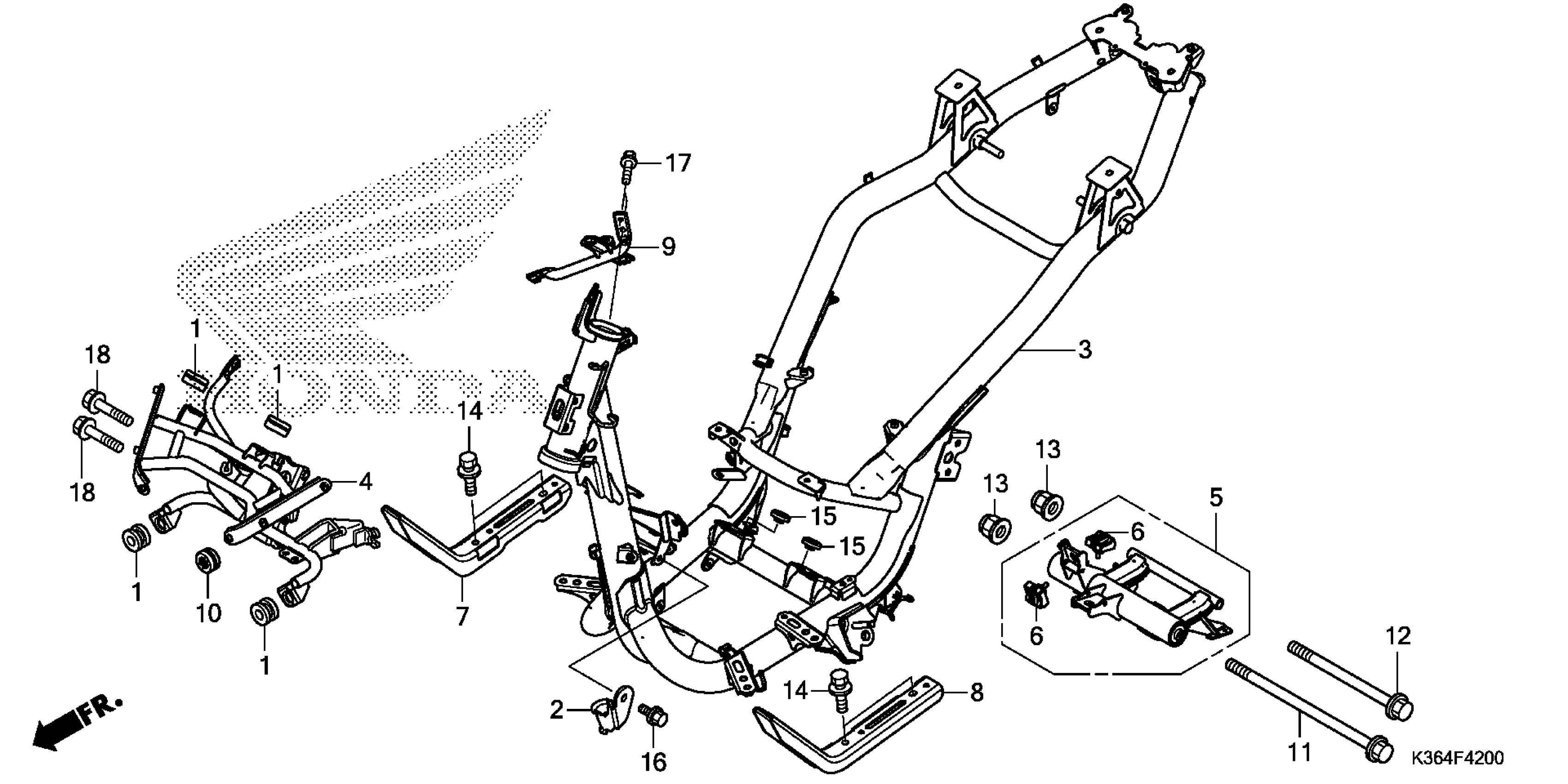 Honda PCX1502AC (18) PCX150, VNM, VIN# RLHKF280-JY300001 FRAME Diagram