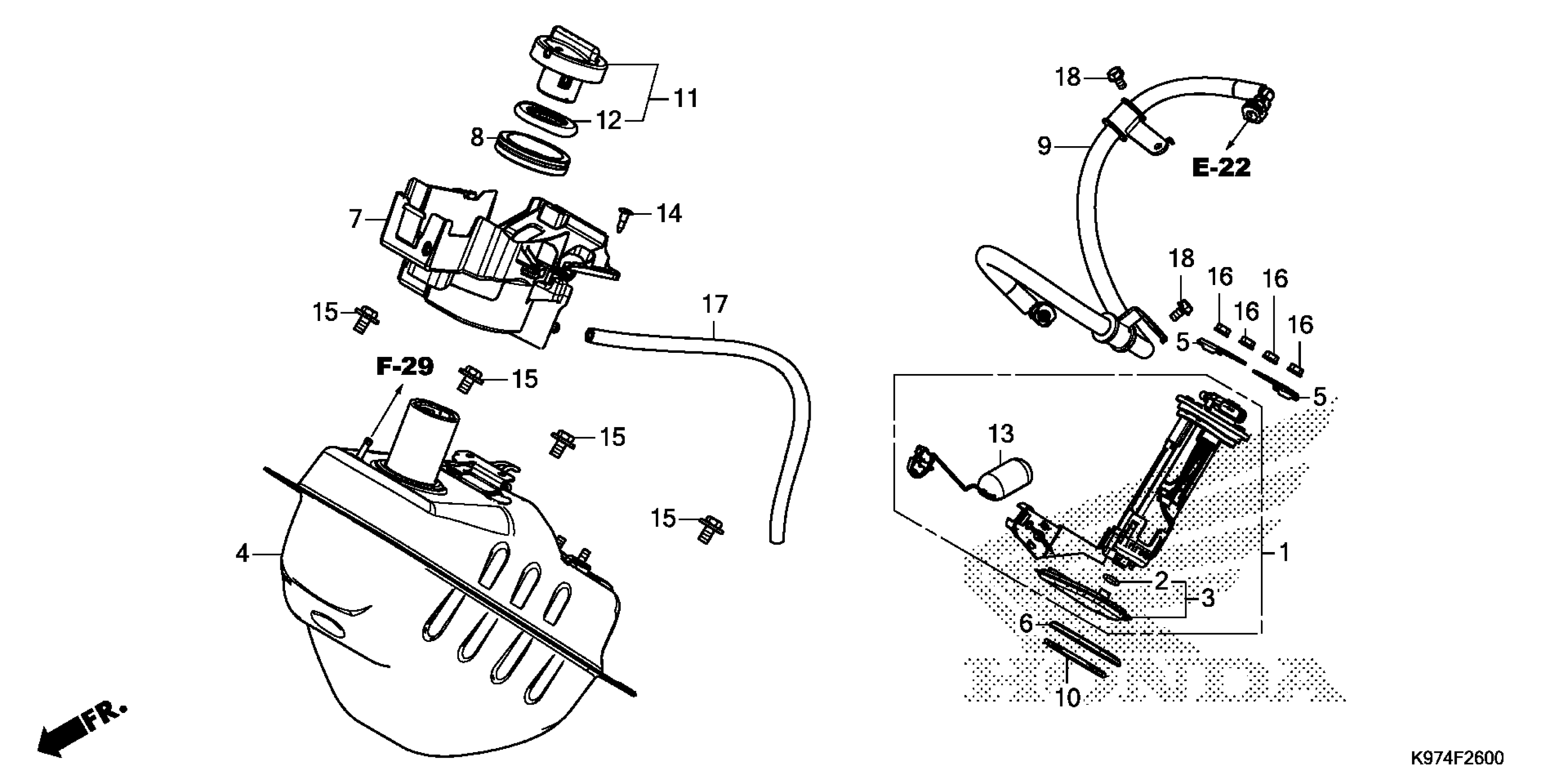 Honda PCX150AAC (20) MOTOR SCOOTER, VNM, VIN# RLHKF301-LY000001 FUEL TANK Diagram