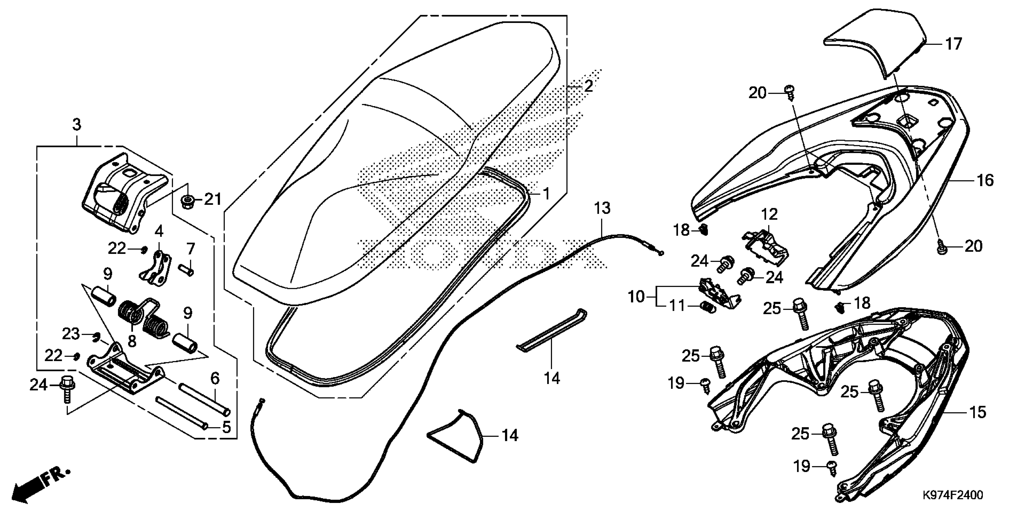 Honda PCX150AAC (20) MOTOR SCOOTER, VNM, VIN# RLHKF301-LY000001 SEAT Diagram