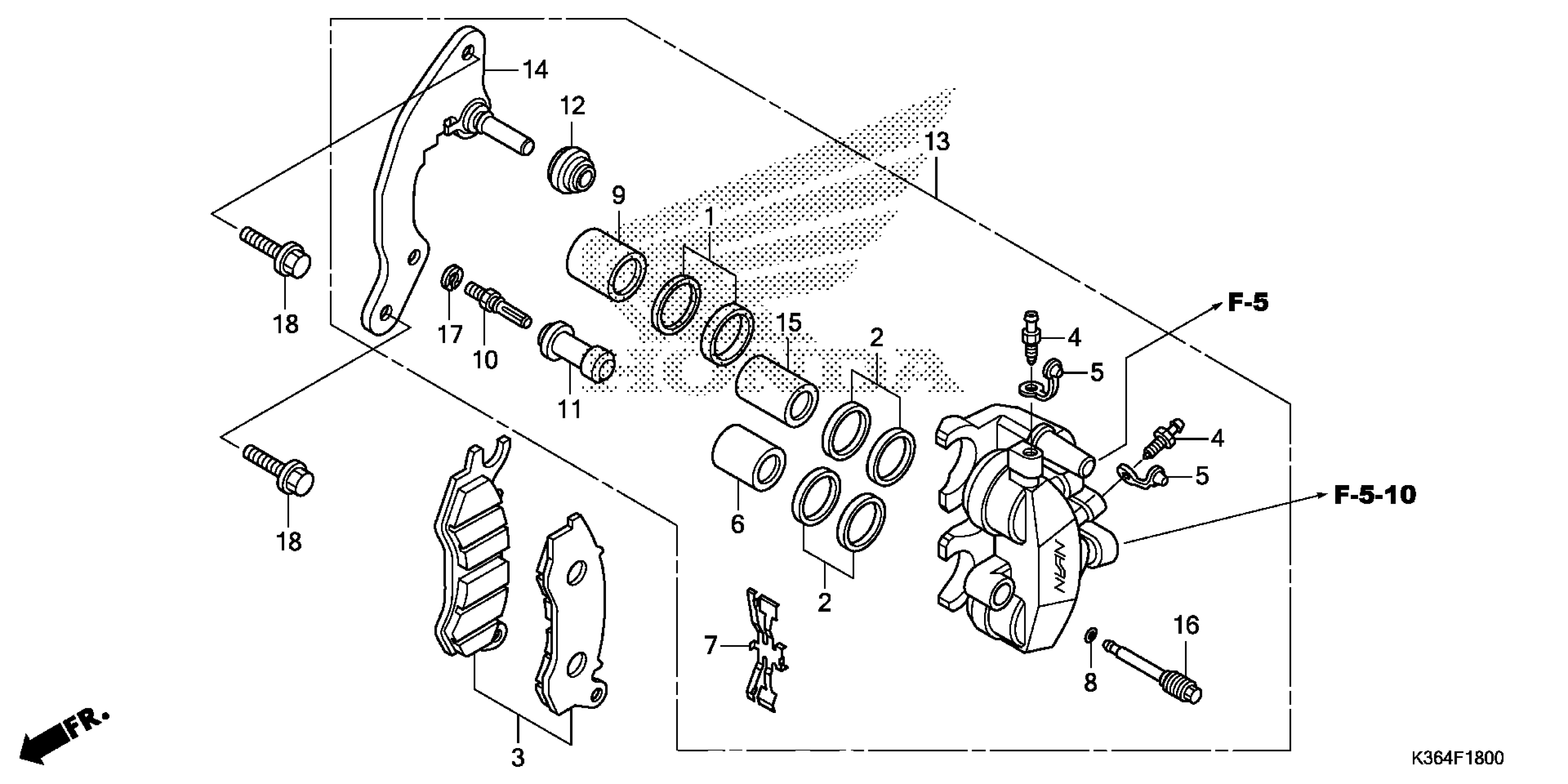 Honda PCX150AC (15) PCX150, VNM, VIN# RLHKF180-FY000001 TO RLHKF180-FY099999 FRONT BRAKE CALIPER Diagram
