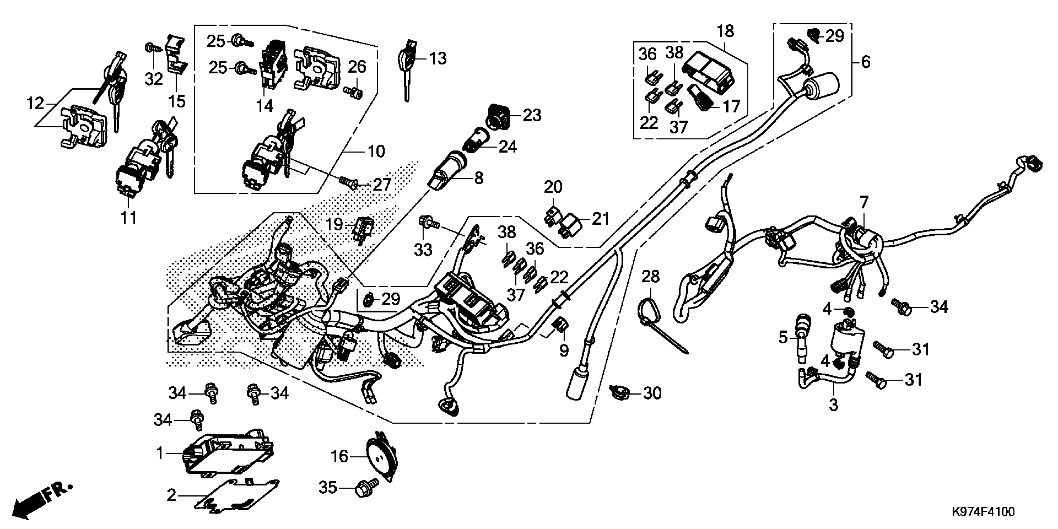 Honda PCX150AC (20) MOTOR SCOOTER, VNM, VIN# RLHKF300-LY000001 WIRE HARNESS@FOB KEY Diagram