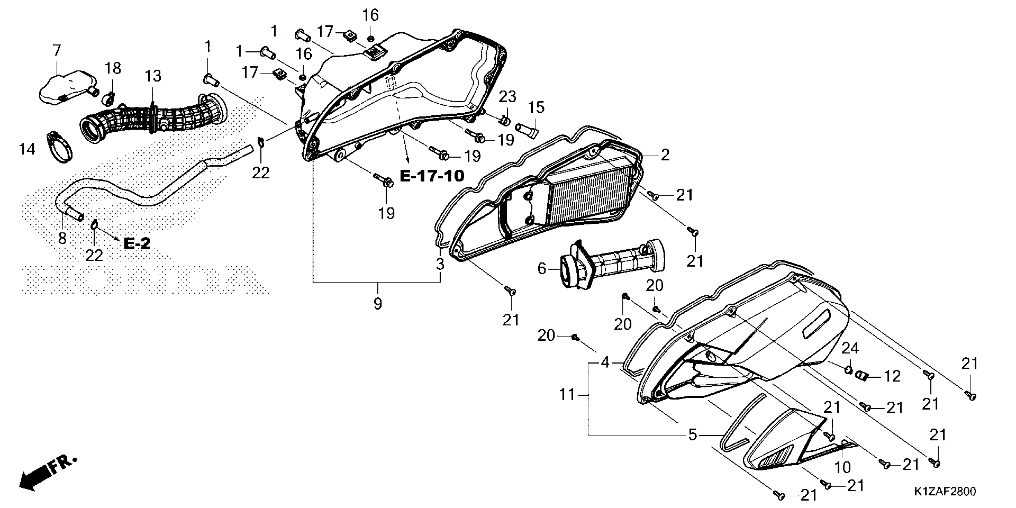 Honda PCX160AAC (25) MOTORCYCLE, VNM, VIN# RLHKF472-SY000001 TO RLHKF472-SY099999 AIR CLEANER Diagram