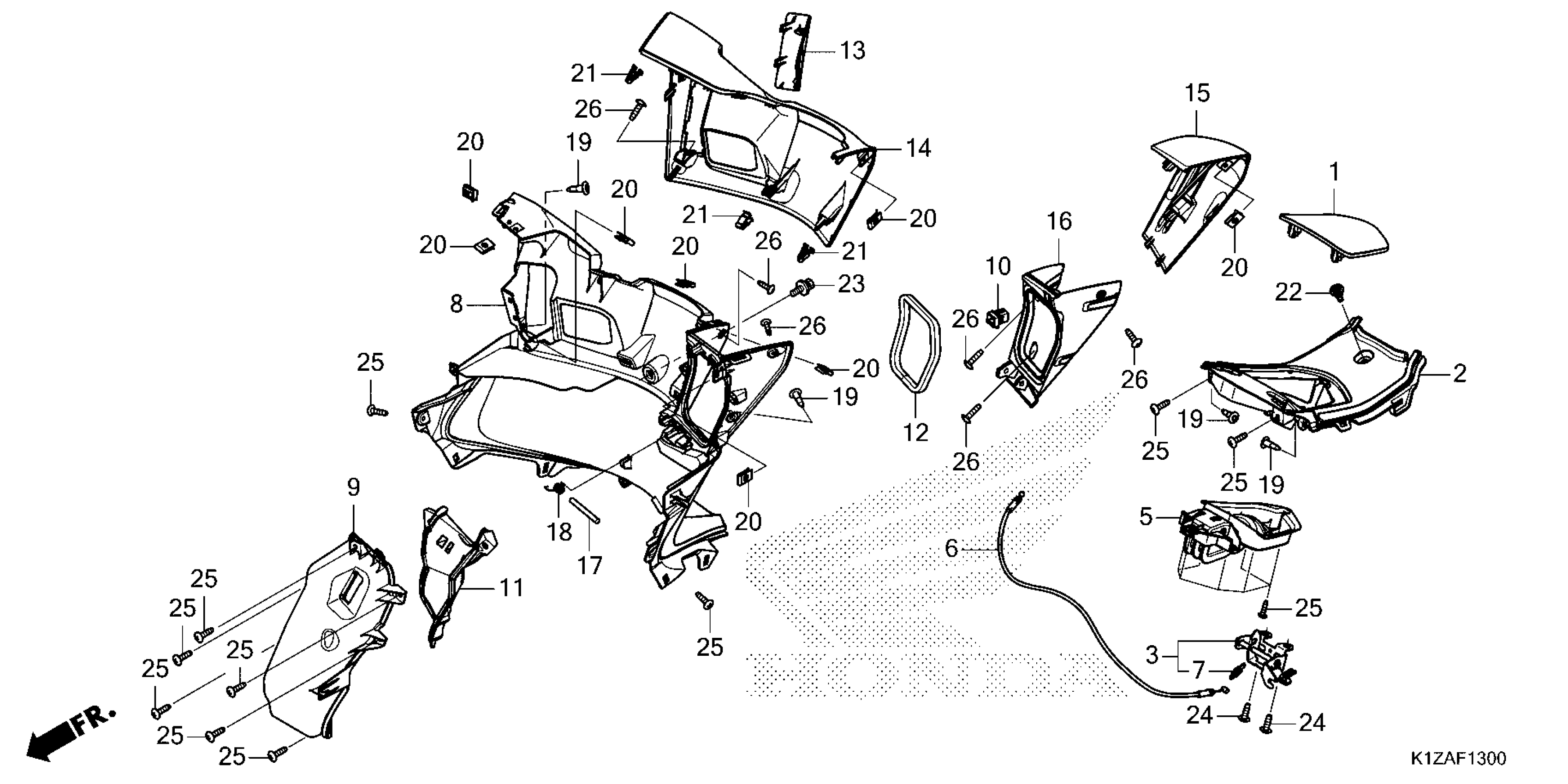 Honda PCX160AAC (25) MOTORCYCLE, VNM, VIN# RLHKF472-SY000001 TO RLHKF472-SY099999 INNER COVER Diagram