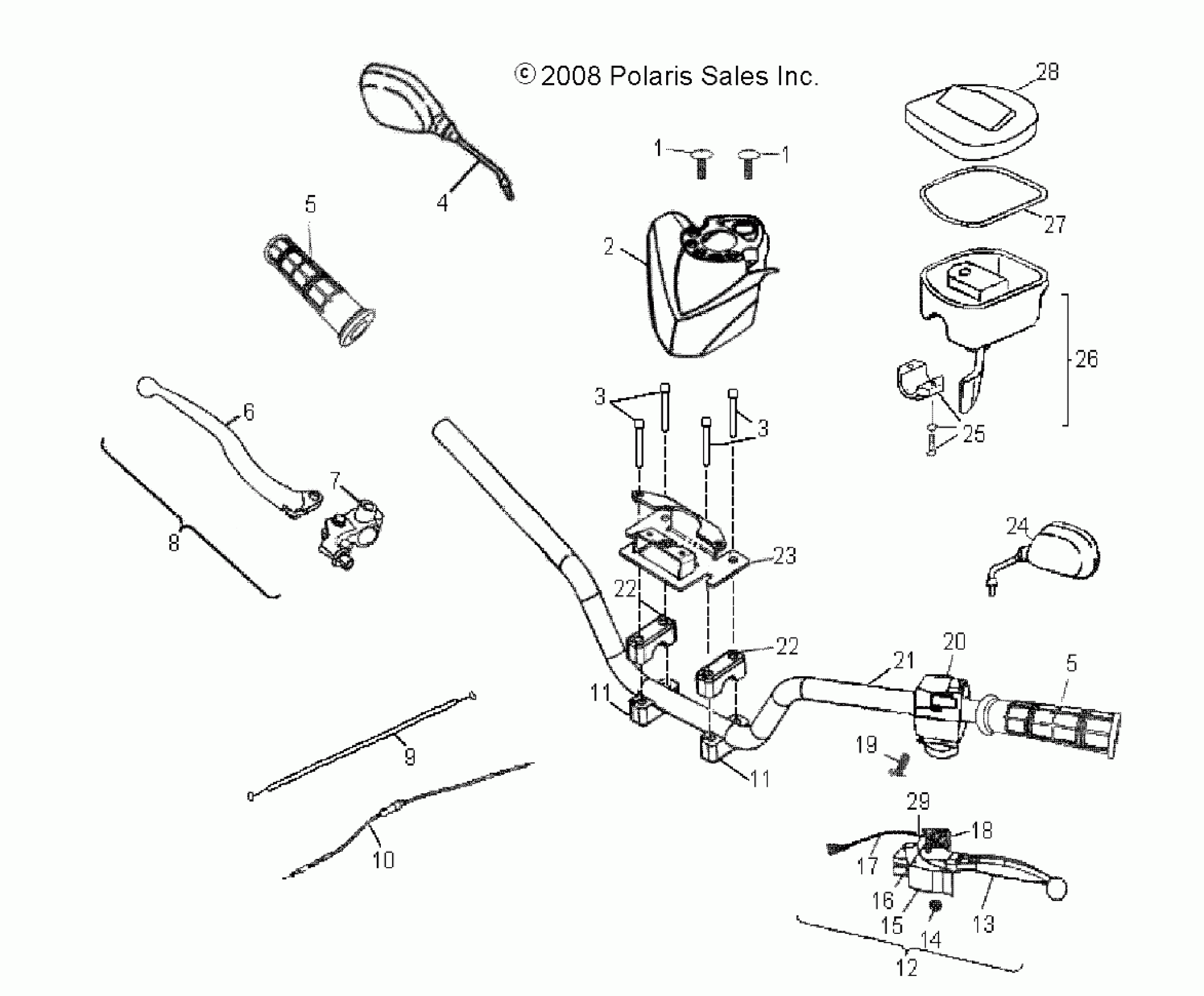 Polaris PHOENIX 200 QUAD - A10PB20EB STEERING, HANDLEBAR - A10PB20EB (49ATVHANDLEBAR09PHXQD) Diagram