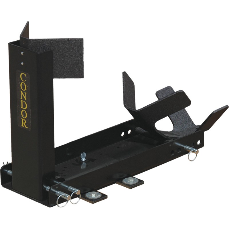 Make your life easier with the Pit Stop/Trailer Stop. Just place it in your garage, and ride your bike right into it - no kickstand required. Now the bike takes up less room in your garage because it sits upright, and you can check the fluids, service it, or use it outside to wash and detail your ride. When the time comes to trailer your motorcycle, the Pit Stop/Trailer Stop simply snaps into the Trailer Adaptor Kit (290-01002) that mounts to the floor of your trailer, and you're ready to secure your motorcycle for safe transporting. The chock will hold your motorcycle so securely, only one person is needed to load and unload any bike, and only two tie-down straps are required. And you won't damage your sensitive suspension parts because you never need to overtighten your straps. If you are transporting your bike in the back of a pick-up truck, you don't even need our adaptor kit. Just place the chock up against the front of the bed, and simply tie the bike from its mid-point towards the front of the truck bed, and you're good to go. If your trailer is equipped with E-Track, use the Universal E-Track Adaptor Kit (290-01004) to mount the chock to, which allows you to place your bike anywhere you like along the track, fore and aft, or side to side. The patented adjustable cradle fits ALL bikes from dirt bikes and sportbikes, to cruisers and heavy touring bikes, and anything in between, up to 3,000 lbs. It will work on front and rear tires from 14" to 22" and 80mm to 230mm. The Pit Stop is also perfect for racers and track day riders, since you can haul your bike to the track in the chock, and then take the Pit Stop out of the trailer and use it as a track stand. The Scooter Pit Stop/Trailer Stop works with scooters and smaller motorcycles with wheel diameters ranging from 8" to 16" and tire widths from 80mm to 120mm. The CONDOR® Pit-Stop/Trailer-Stop is made of light weight aluminum, weighing only 30 lbs., and folds down for easy storage.