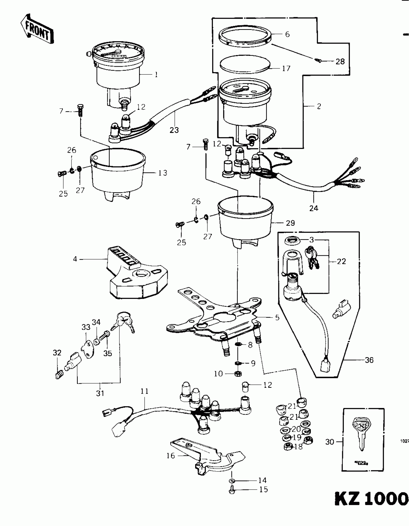 Kawasaki Police 1000 METERS/IGNITION SWITCH ('79-'81 C2/C3) Diagram