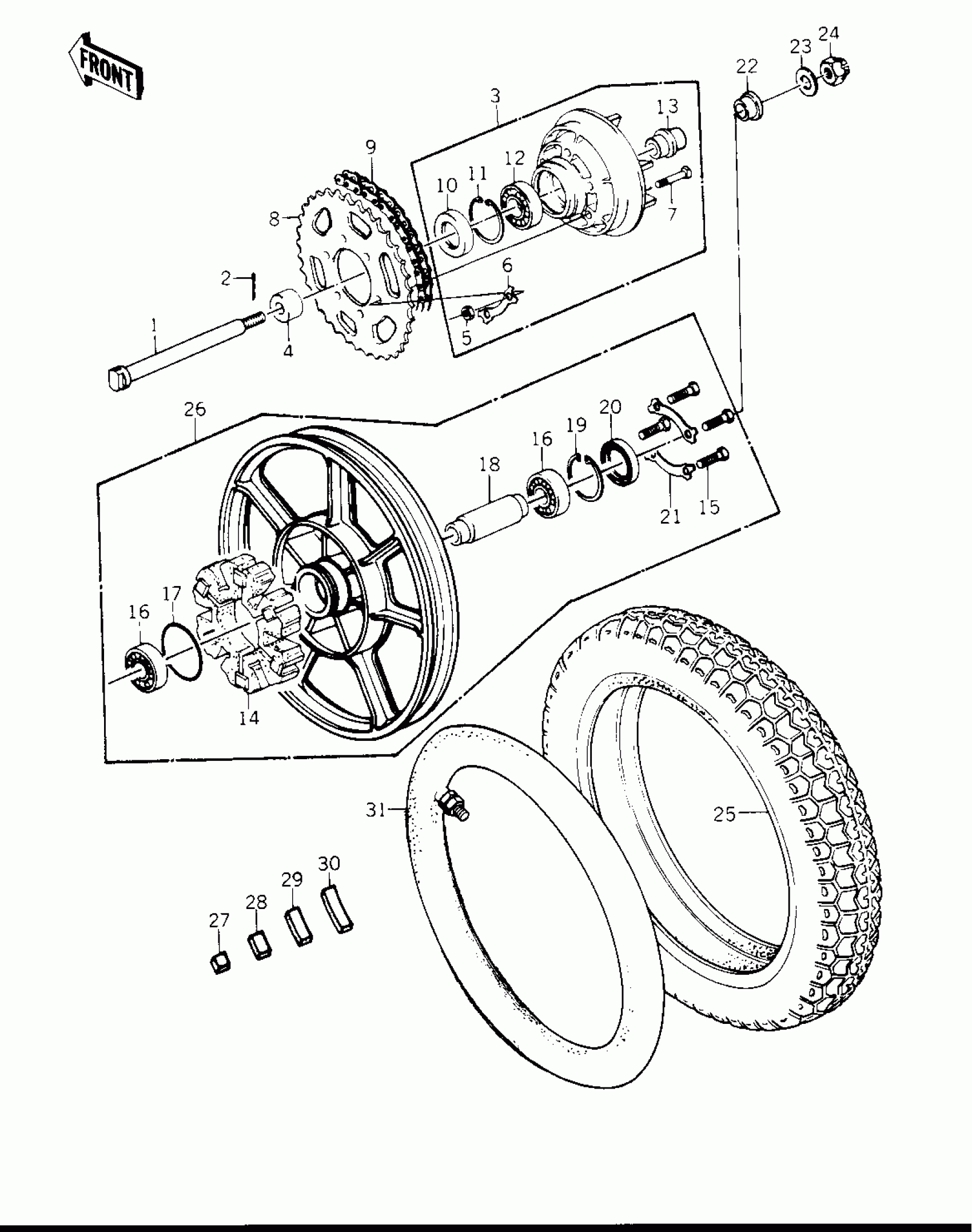 REAR WHEEL/TIRE/HUB/CHAIN ('78 C1/C1A)