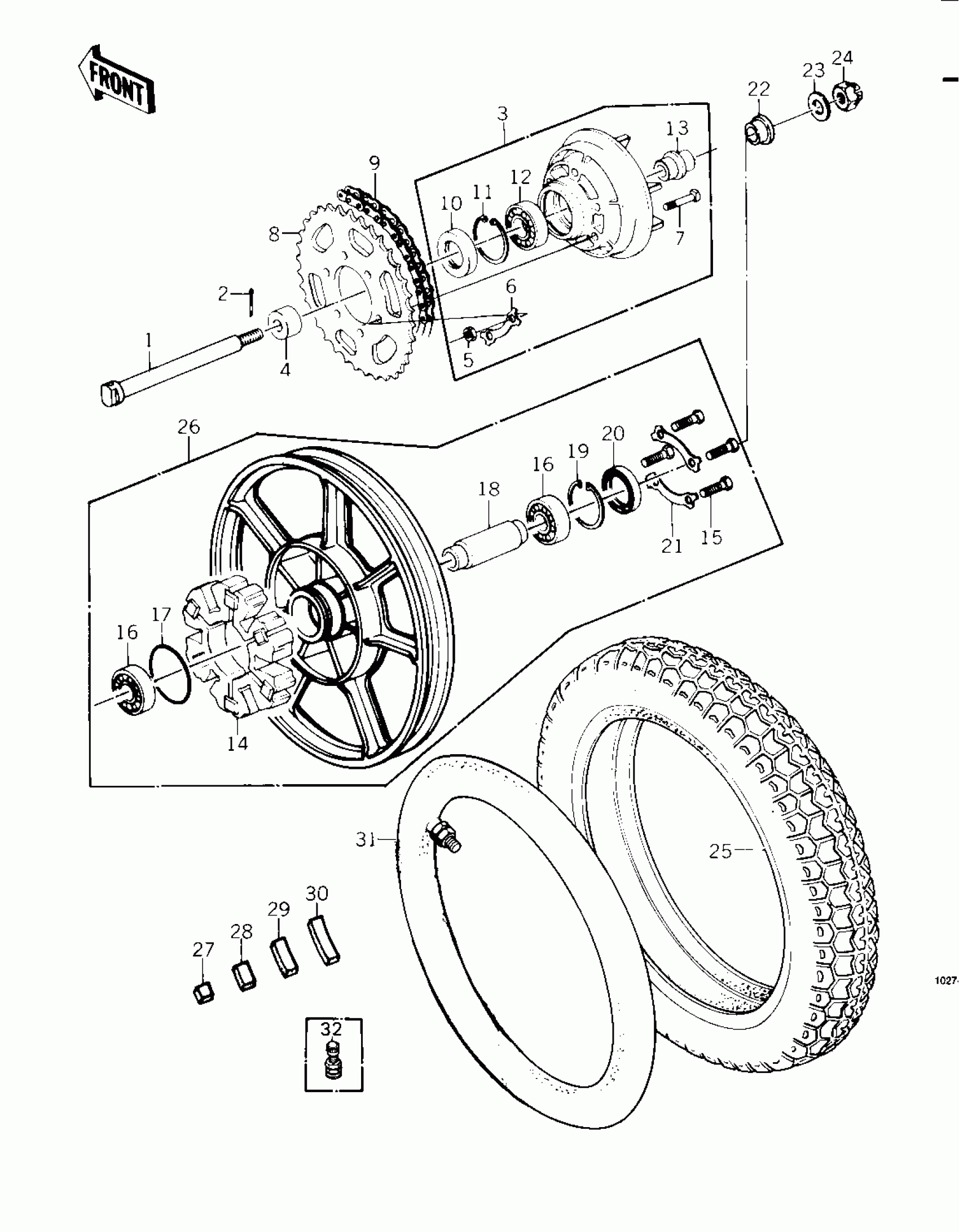 REAR WHEEL/TIRE/HUB/CHAIN ('79-'81 C2/C3