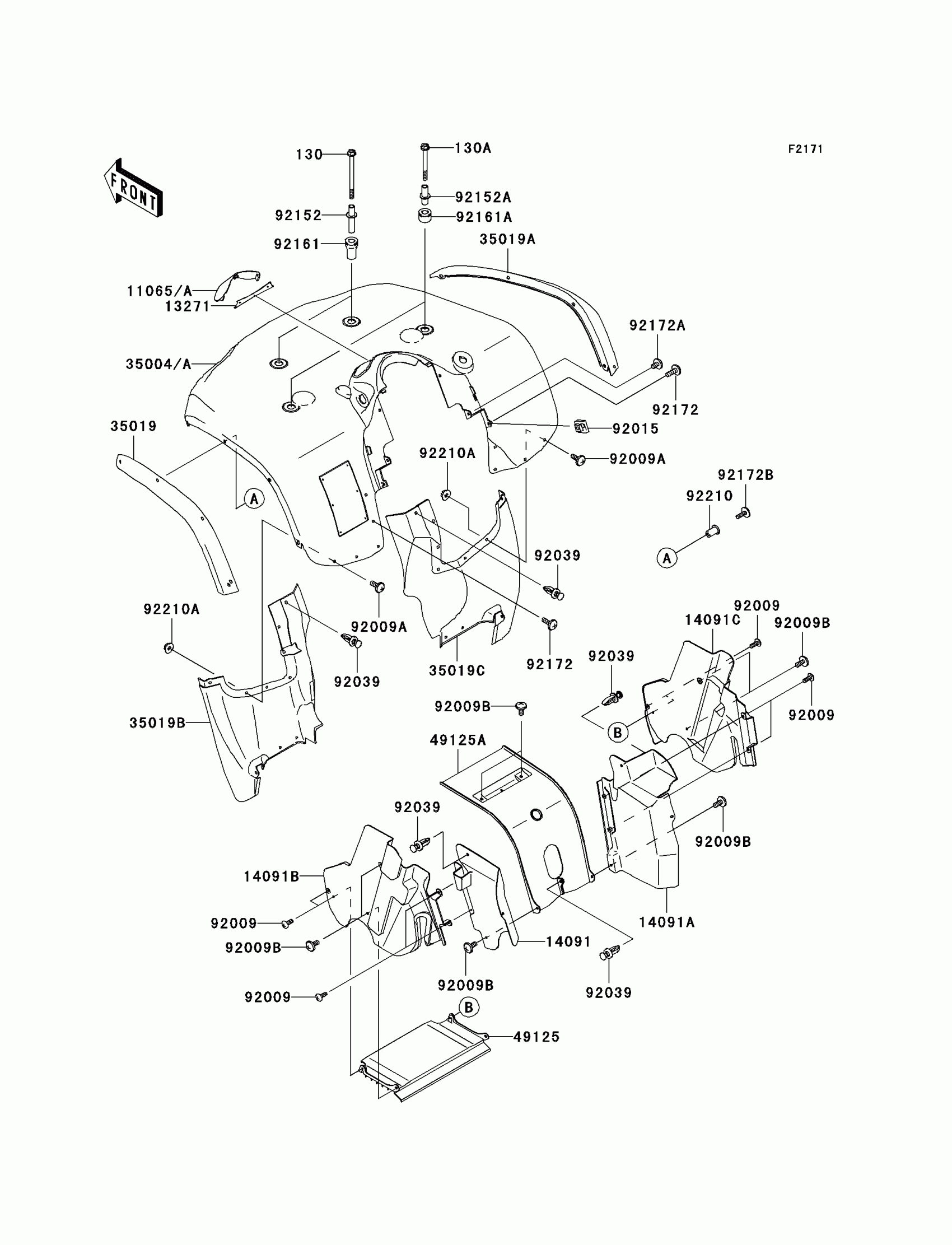 Kawasaki Prairie 700 4x4 Front Fender(s) Diagram