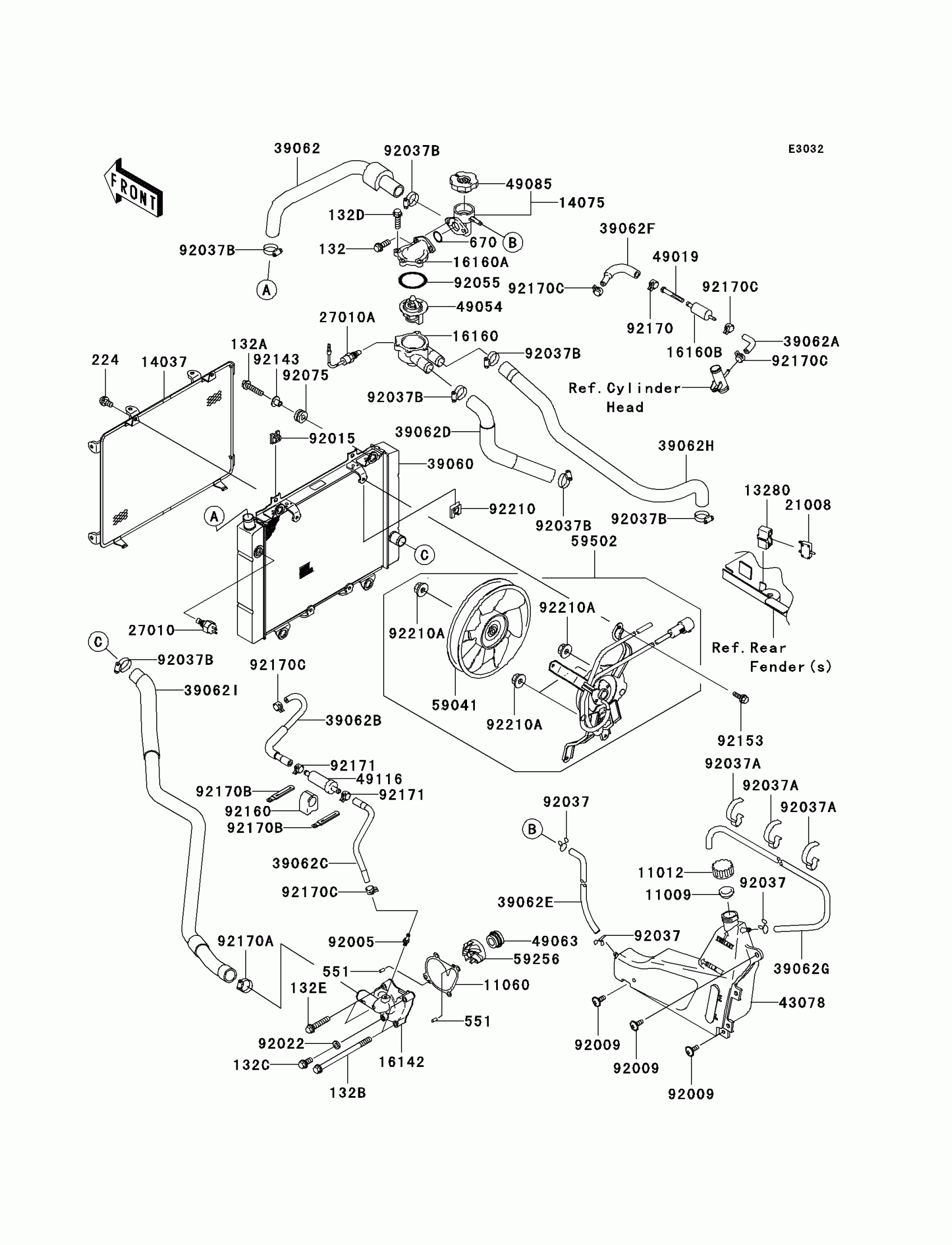 Kawasaki Prairie 700 4x4 Team Green Special Edition Radiator Diagram