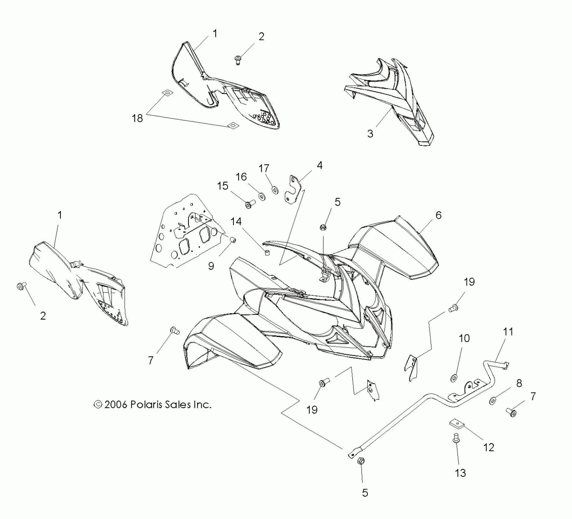 Polaris PREDATOR 500/LE - A07GJ50AA/AB/AC CAB, FRONT and SIDE PANELS - A07GJ50AA/AB/AC (49ATVCABPRED500) Diagram