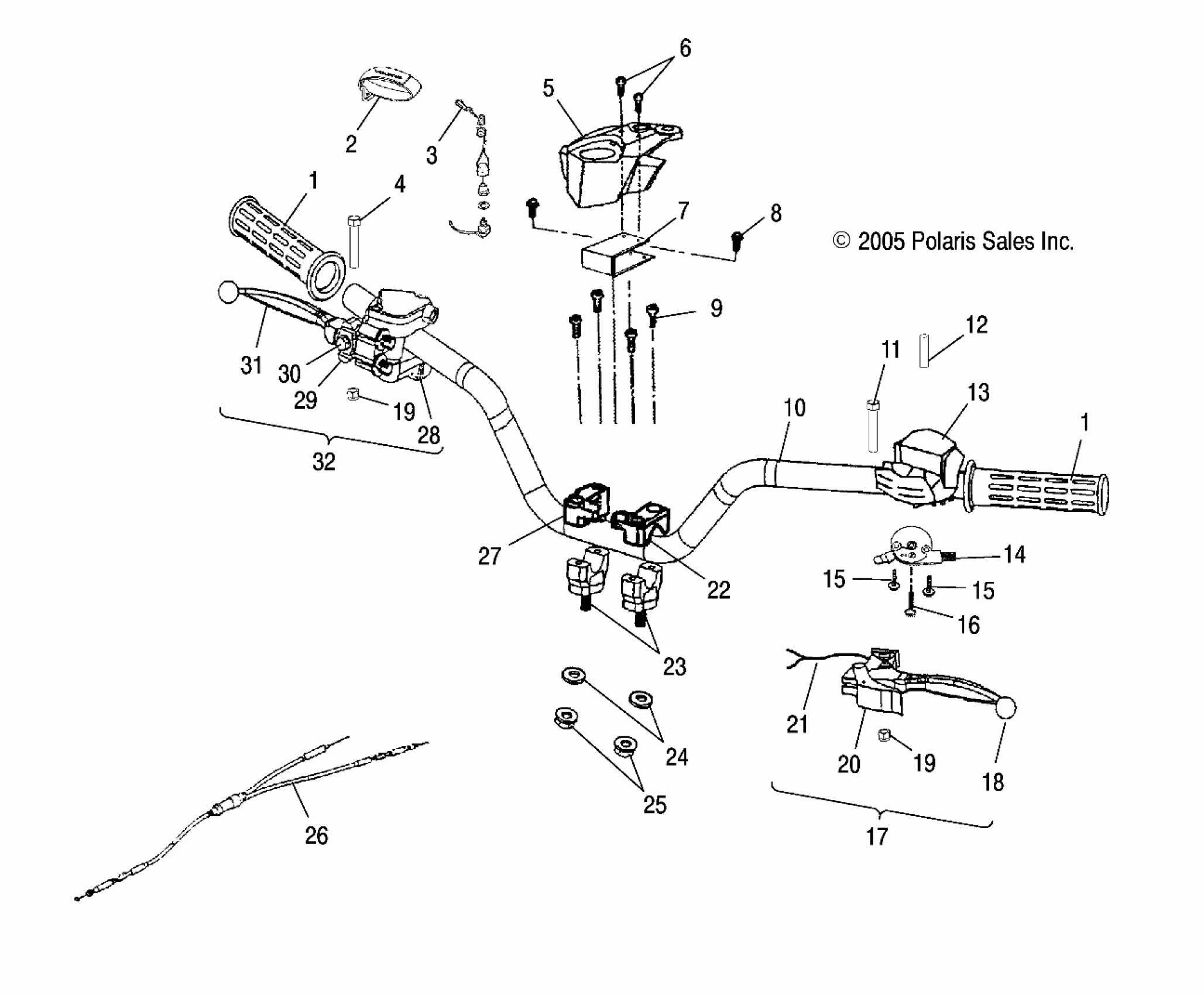 Polaris PREDATOR 90 - A05KA09CA HANDLEBAR - A05KA09CA/CB (4999202399920239B13) Diagram