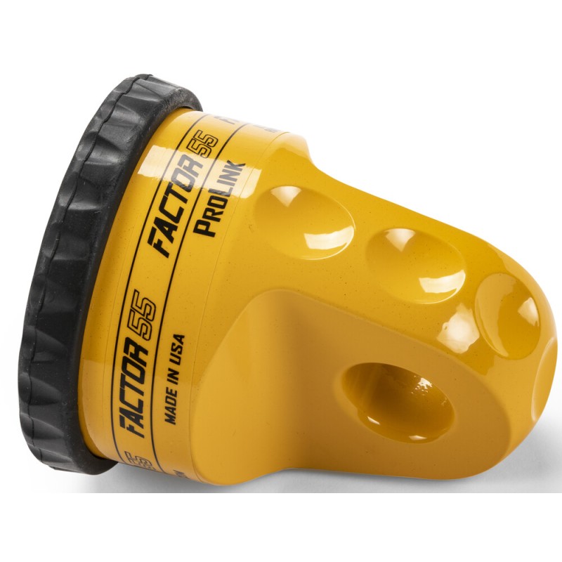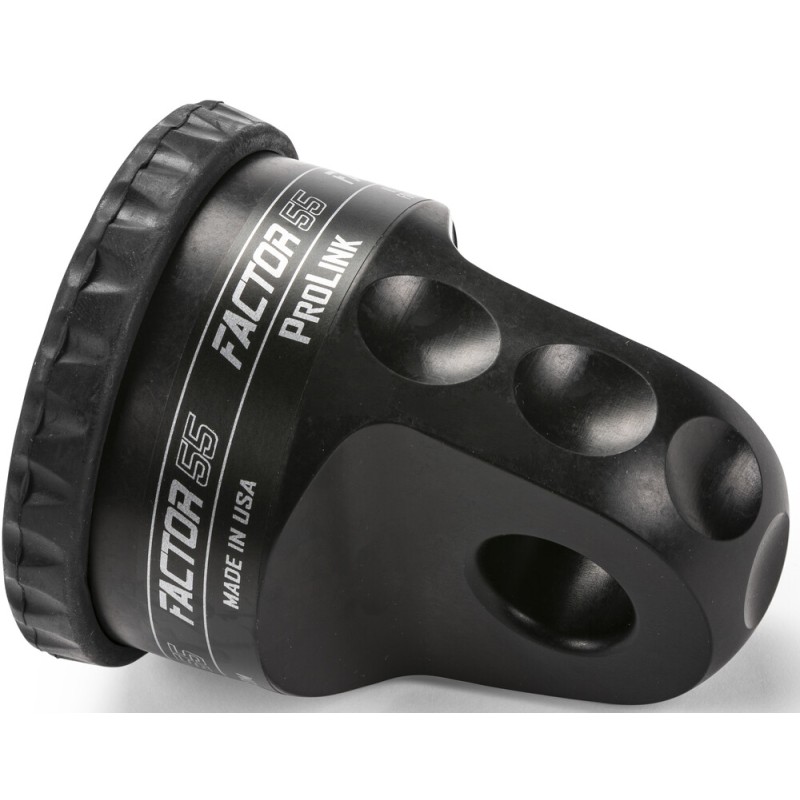 The ProLink XTV allows UTV and ATV winch owners to replace the conventional winch hook with a safer and stronger shackle/D-Ring. Winch hooks can cut and fray recovery straps and often allow strap ends to escape during typical loose/tight cycles of a winching recovery. Screw pin shackles do not allow strap loops to escape due to the secure screw pin attachment. The ProLink XTV does not require splicing and is compatible with steel cables or synthetic ropes up to 5/16 inches. The cable eye is retained in the ProLink XTV by a 7/16 inch diameter titanium double shear pin and internal snap ring. It is easily installed in minutes. The EPDM Rubber Guard protects alloy fairleads and is securely attached to the ProLink XTV with 4 barbed tips.The ProLink XTV stows neatly against either roller or Hawse type fairleads and is designed to be used with common standard ½ – 5/8 inch shackles. MADE IN THE USA, the ProLink XTV is constructed of 6000 series billet aluminum and 6Al-4V titanium and is anodized/powder coated in 5 different colors. The ProLink has a max load rating of 6000 pounds and an ultimate failure of 22,000 pounds.