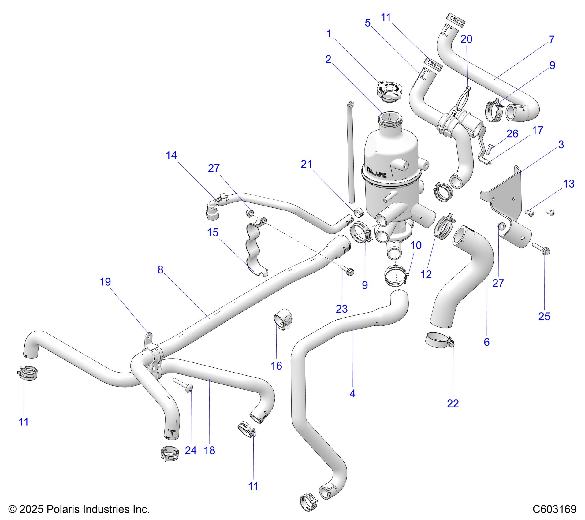 Polaris PROSTAR S4 TITAN ADVENTURE/ADVENTURE ULTIMATE (R01) - S26AJE9FSL/AJN9FSL/FSM ENGINE, COOLING, BOTTLE AND HOSES - S26AJE9FSL/AJN9FSL/FSM (C603169) Diagram