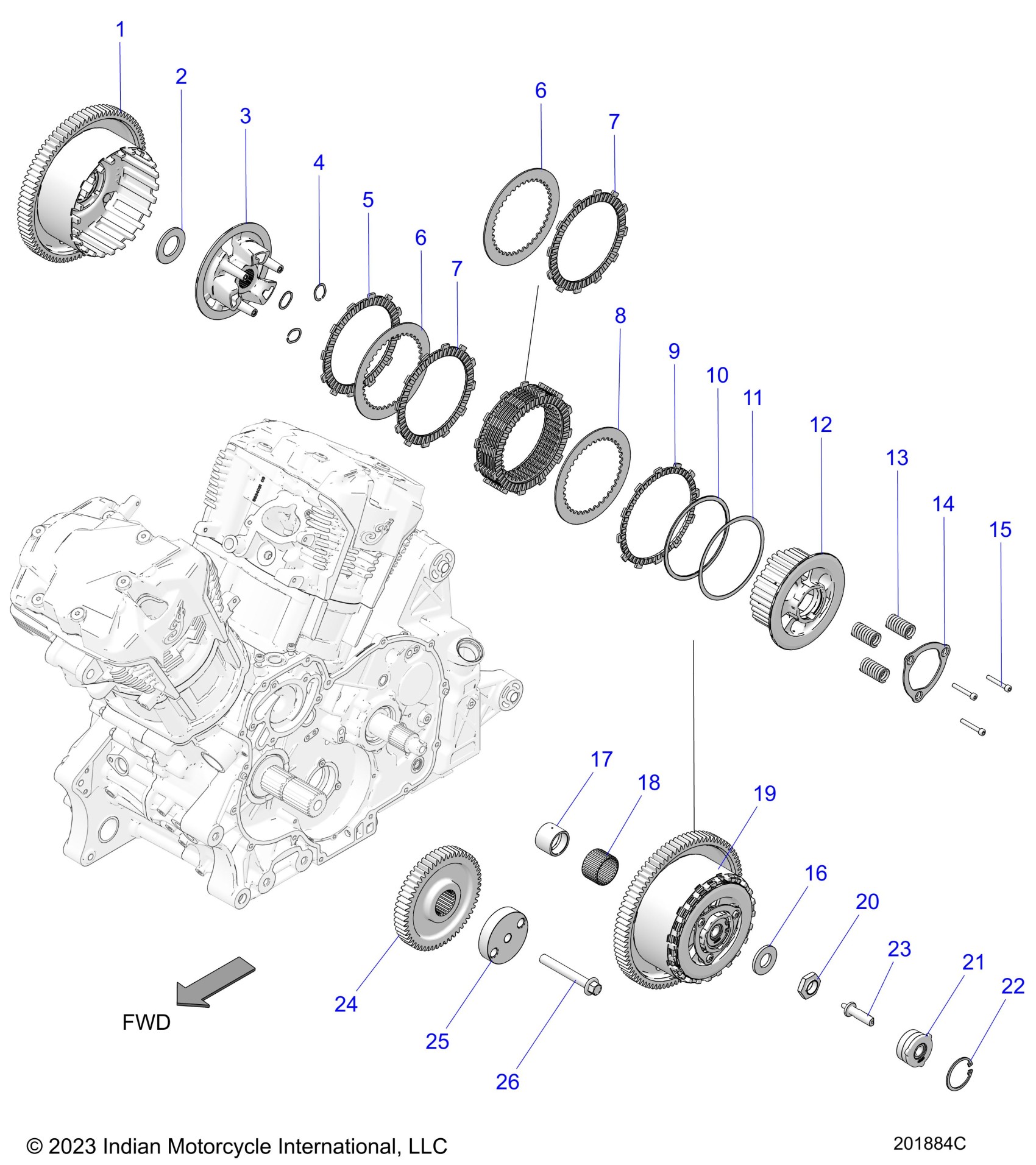 DRIVE TRAIN, CLUTCH AND PRIMARY DRIVE - N23LDDRR/LDFRR ALL OPTIONS (201884C)