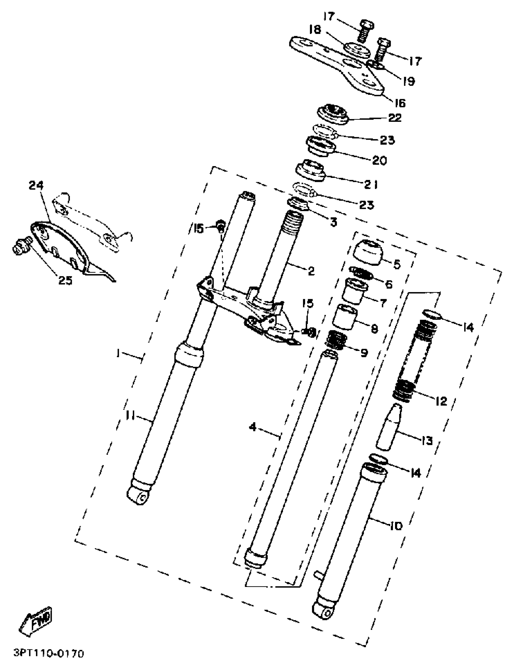 Yamaha PW50A (Y-ZINGER) 1990 FRONT FORK Diagram