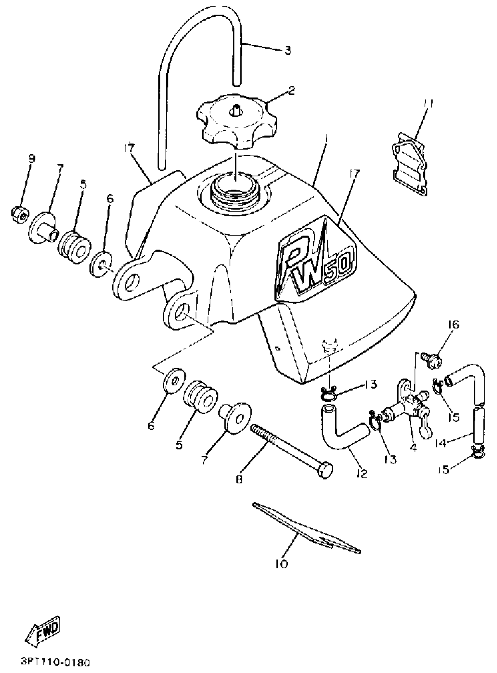 Yamaha PW50B (Y-ZINGER) 1991 FUEL TANK Diagram