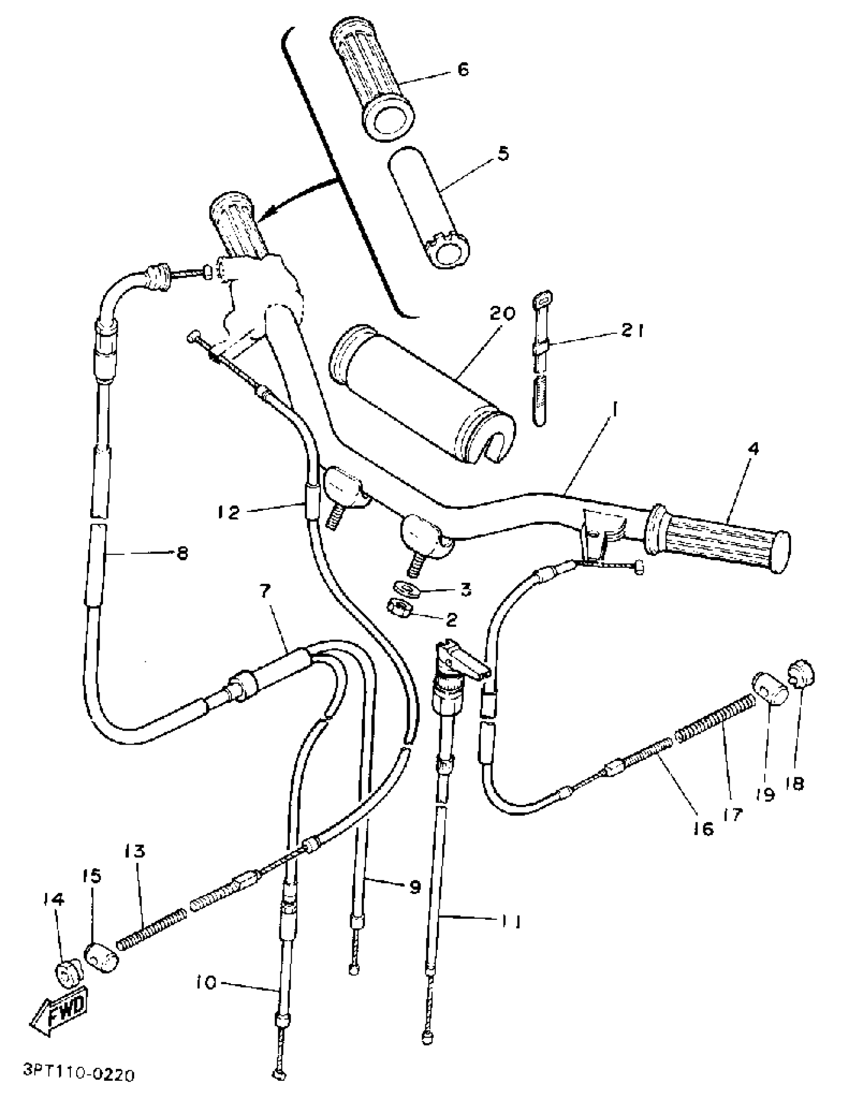 Yamaha PW50B (Y-ZINGER) 1991 HANDLEBAR - CABLE Diagram