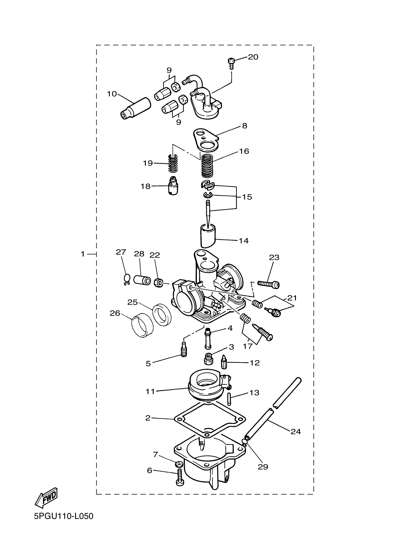 Yamaha PW50D1 (PW50) 5PGV 2013 CARBURETOR Diagram