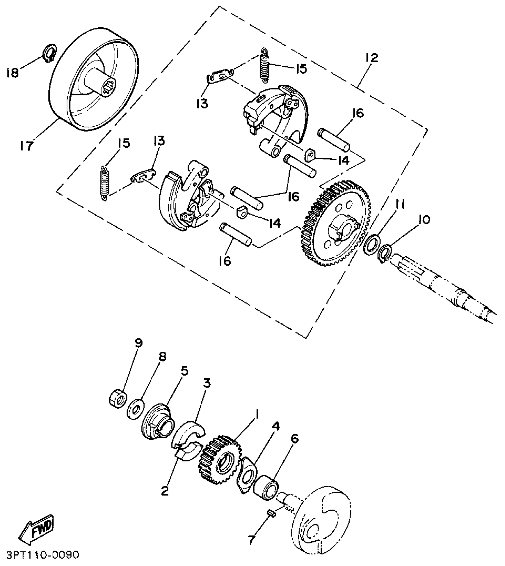 Yamaha PW50G (Y-ZINGER) 1995 CLUTCH Diagram