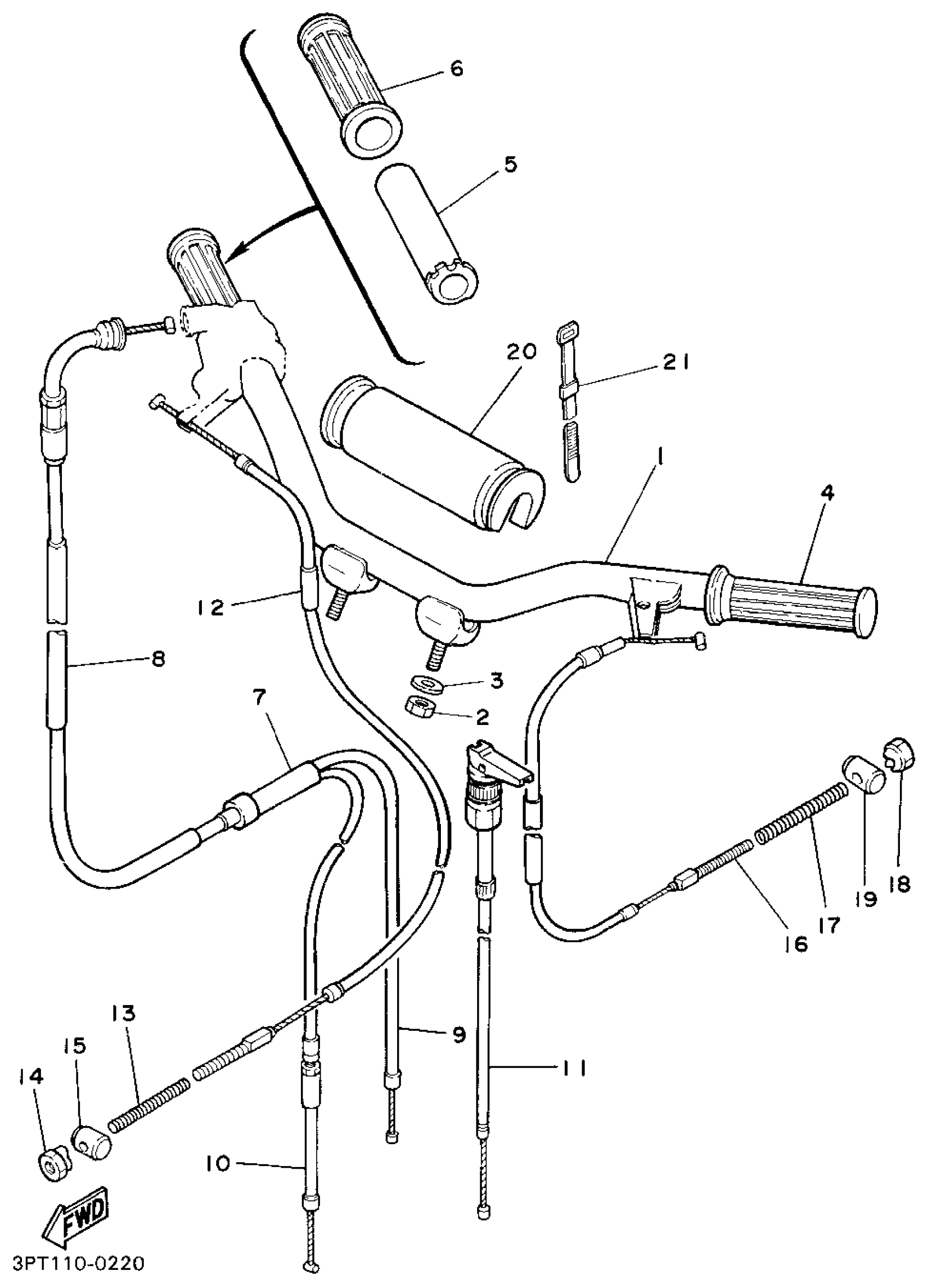 Yamaha PW50G (Y-ZINGER) 1995 STEERING HANDLE - CABLE Diagram