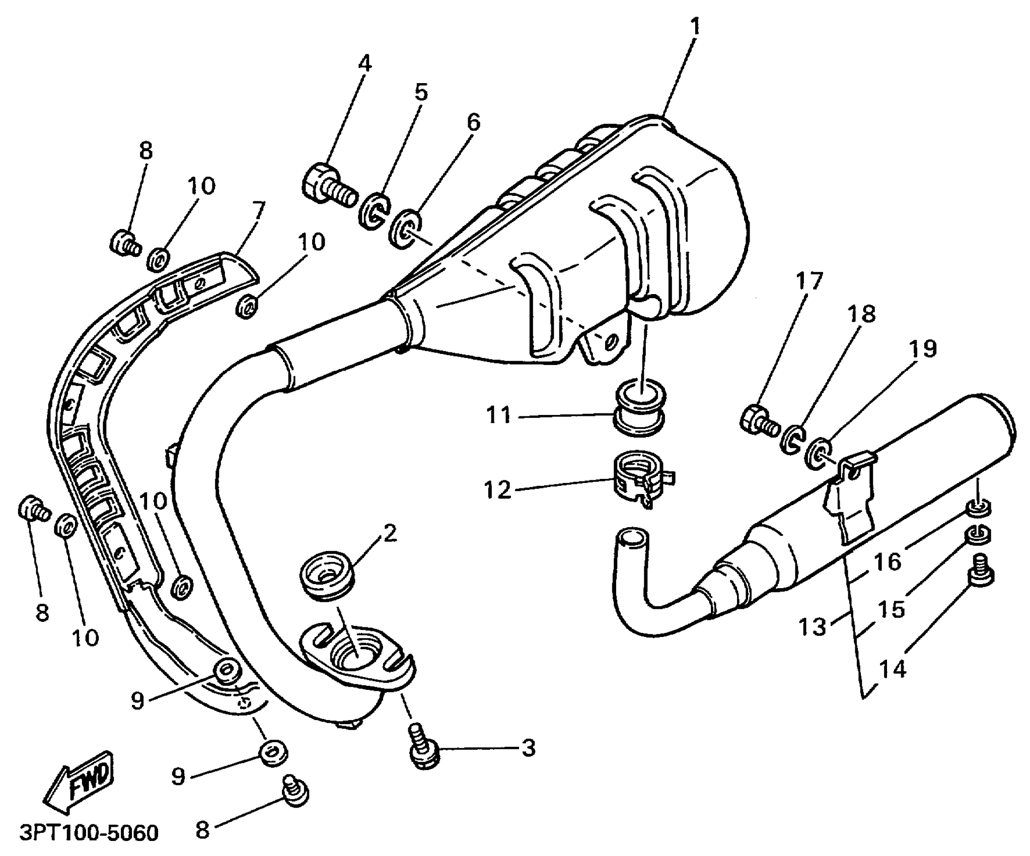 Yamaha PW50L1 (Y-ZINGER) 3PTU 1999 EXHAUST Diagram
