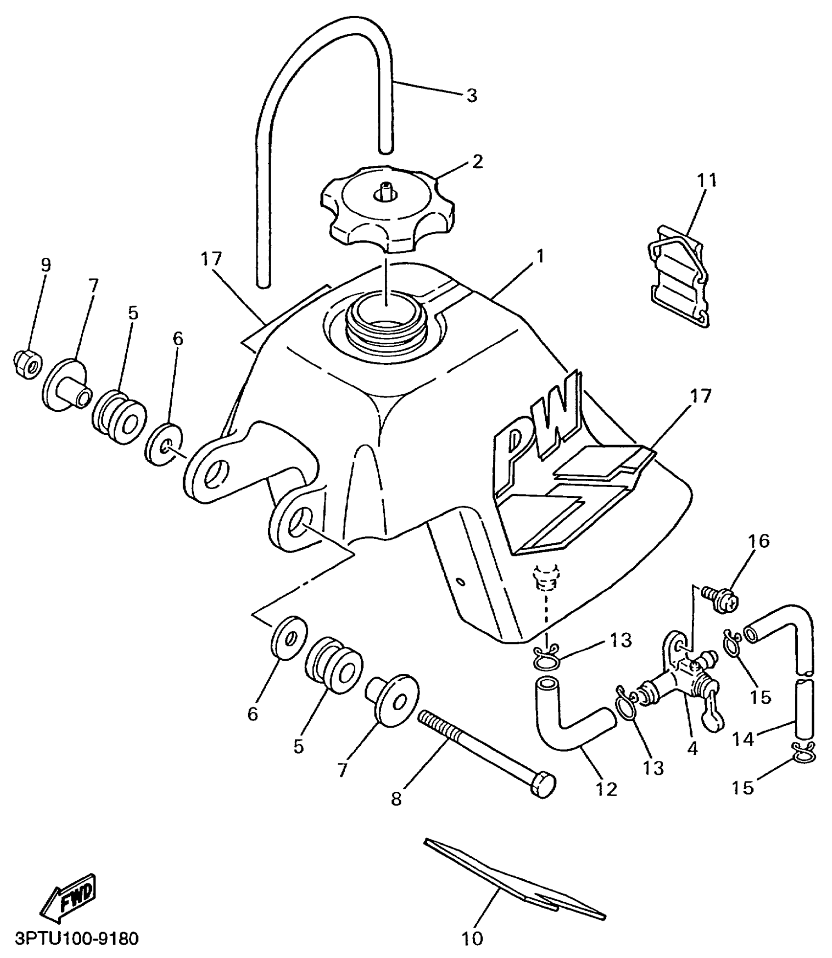 Yamaha PW50L1 (Y-ZINGER) 3PTU 1999 FUEL TANK Diagram