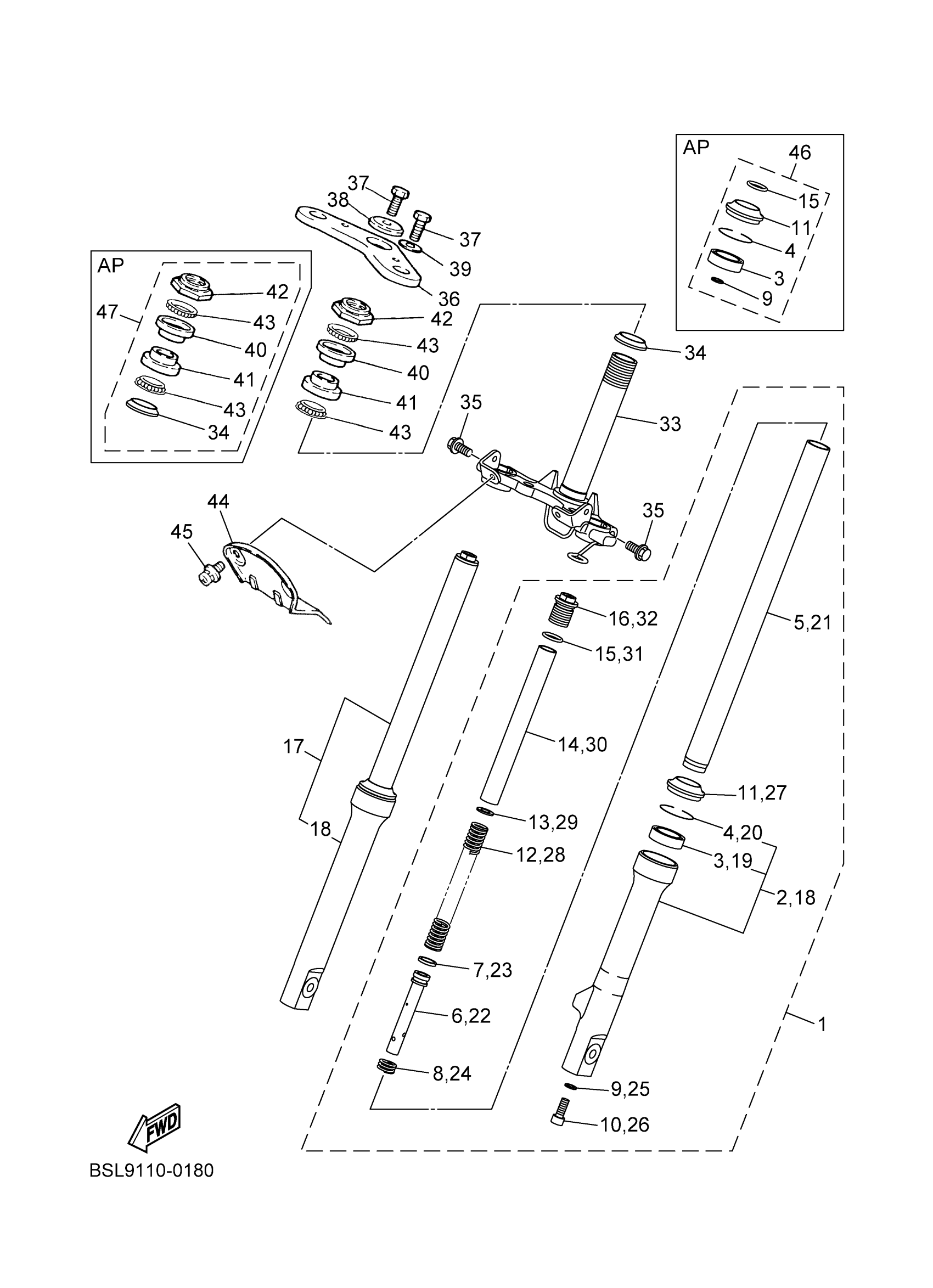 Yamaha PW50S2C (PW50 CA) BSLA 2025 FRONT FORK Diagram