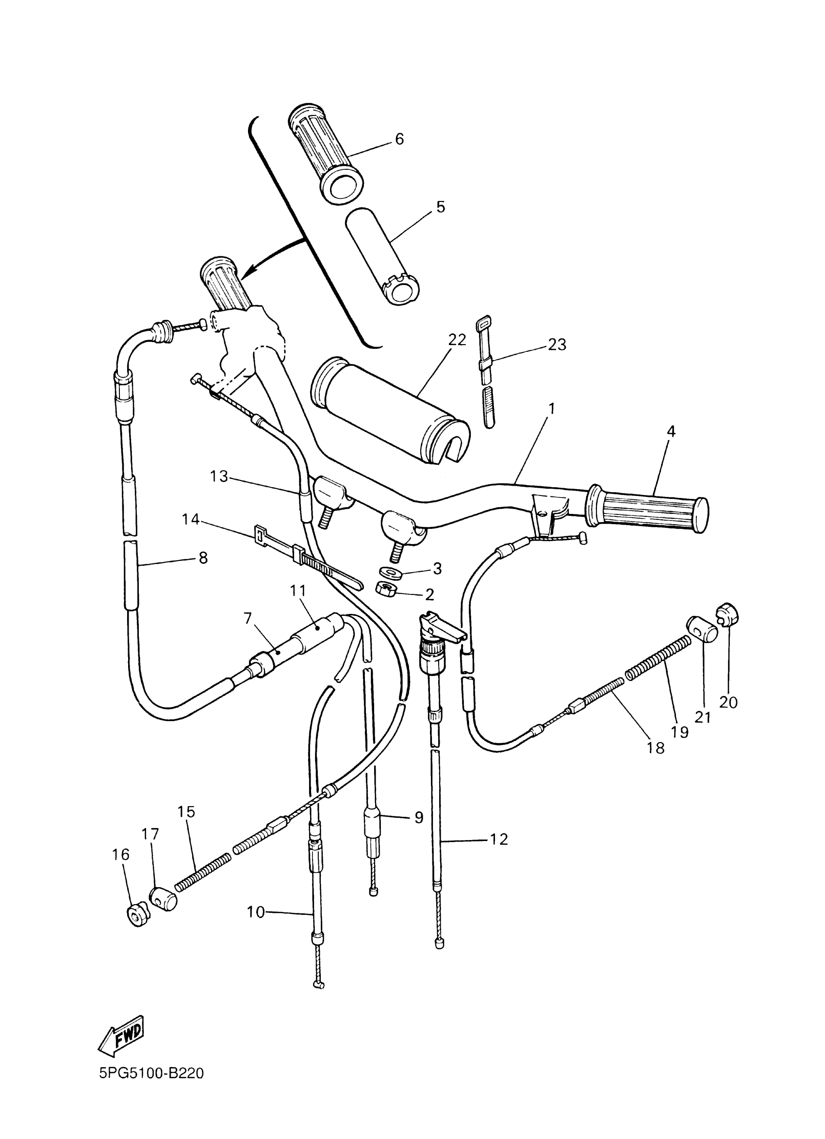 Yamaha PW50S2C (PW50 CA) BSLA 2025 STEERING HANDLE & CABLE Diagram