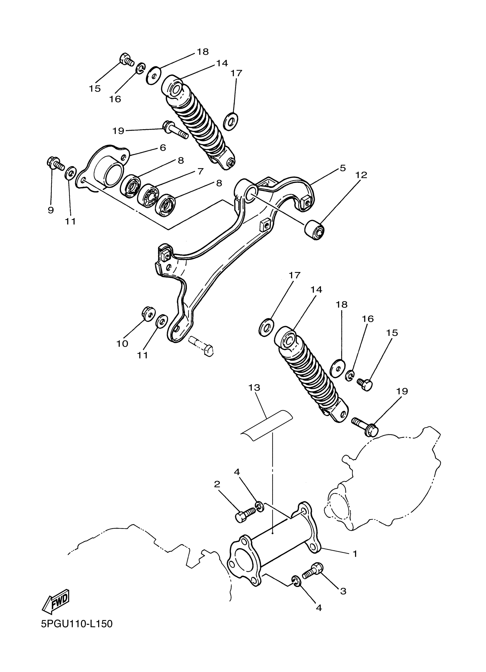 Yamaha PW50T2C (PW50) BSLE 2026 REAR ARM & SUSPENSION Diagram