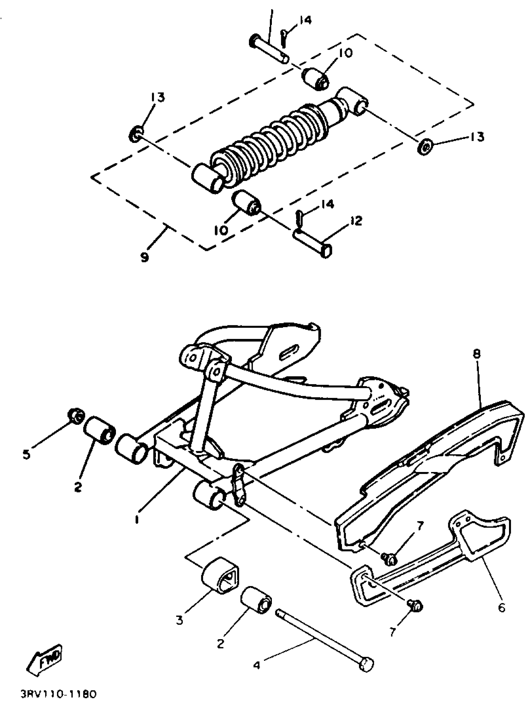 Yamaha PW80B (Y-ZINGER) 1991 SWING ARM REAR SHOCKS Diagram