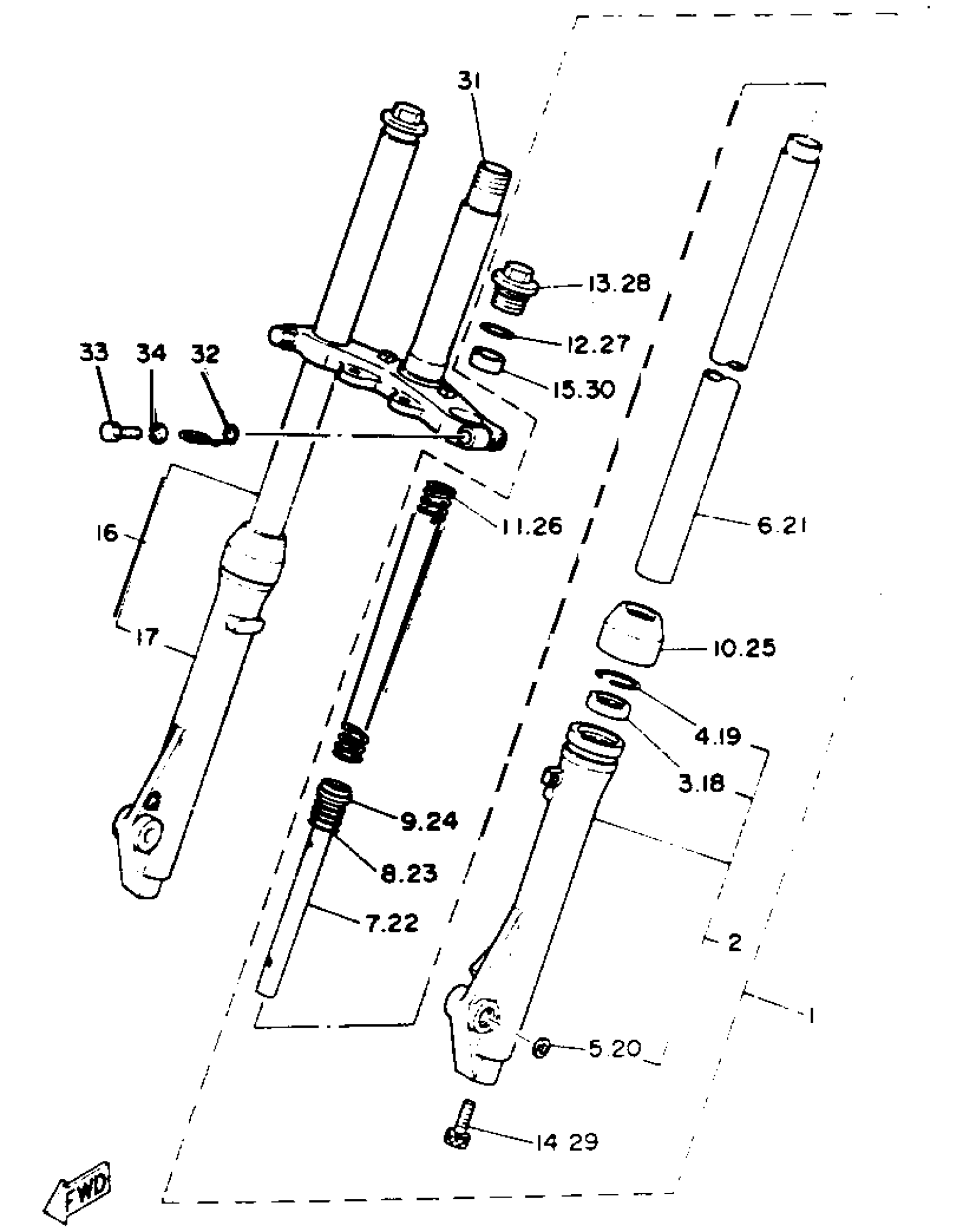 Yamaha PW80E (Y-ZINGER) 1993 FRONT FORK Diagram