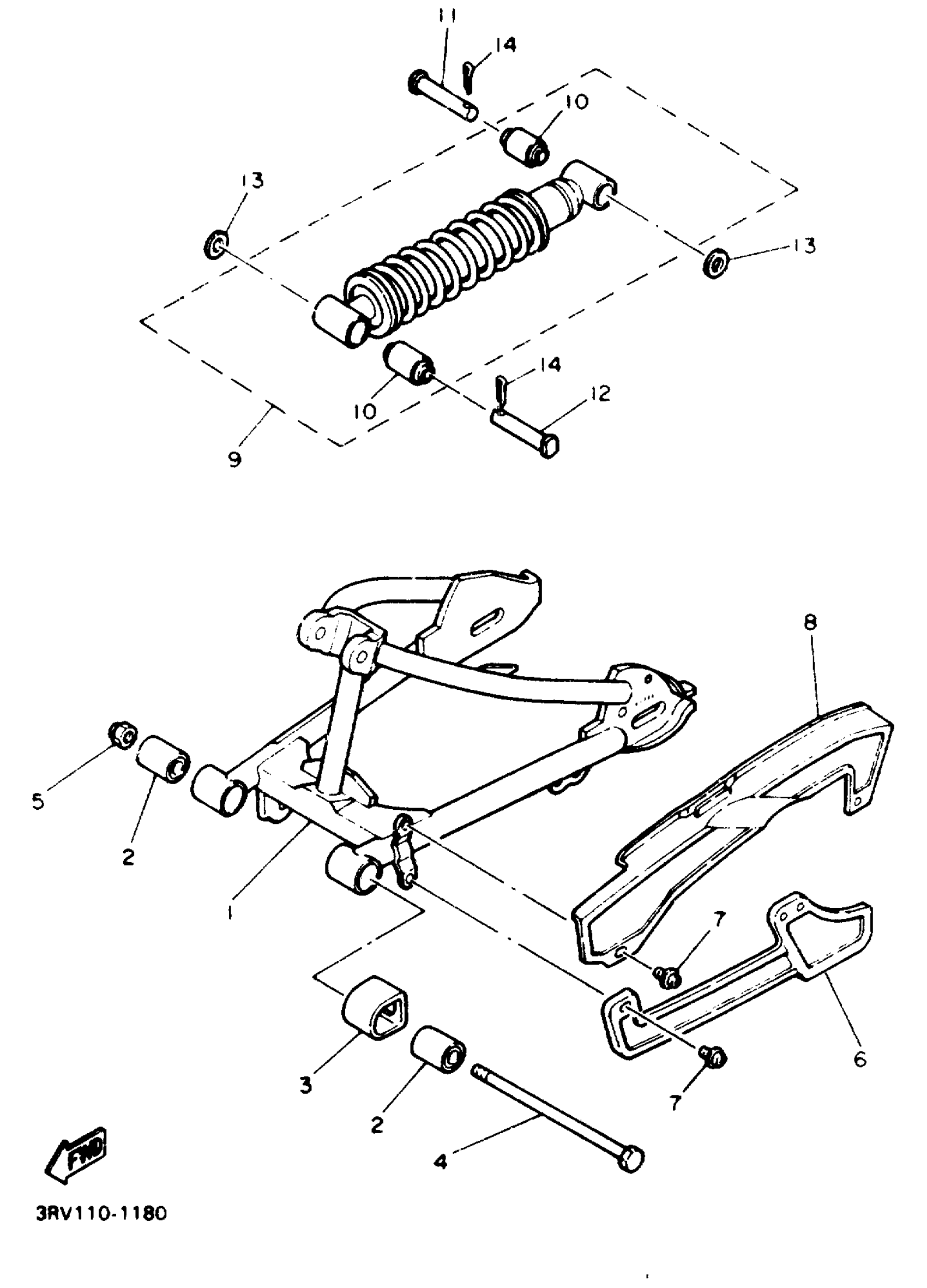 Yamaha PW80E (Y-ZINGER) 1993 SWING ARM REAR SHOCKS Diagram
