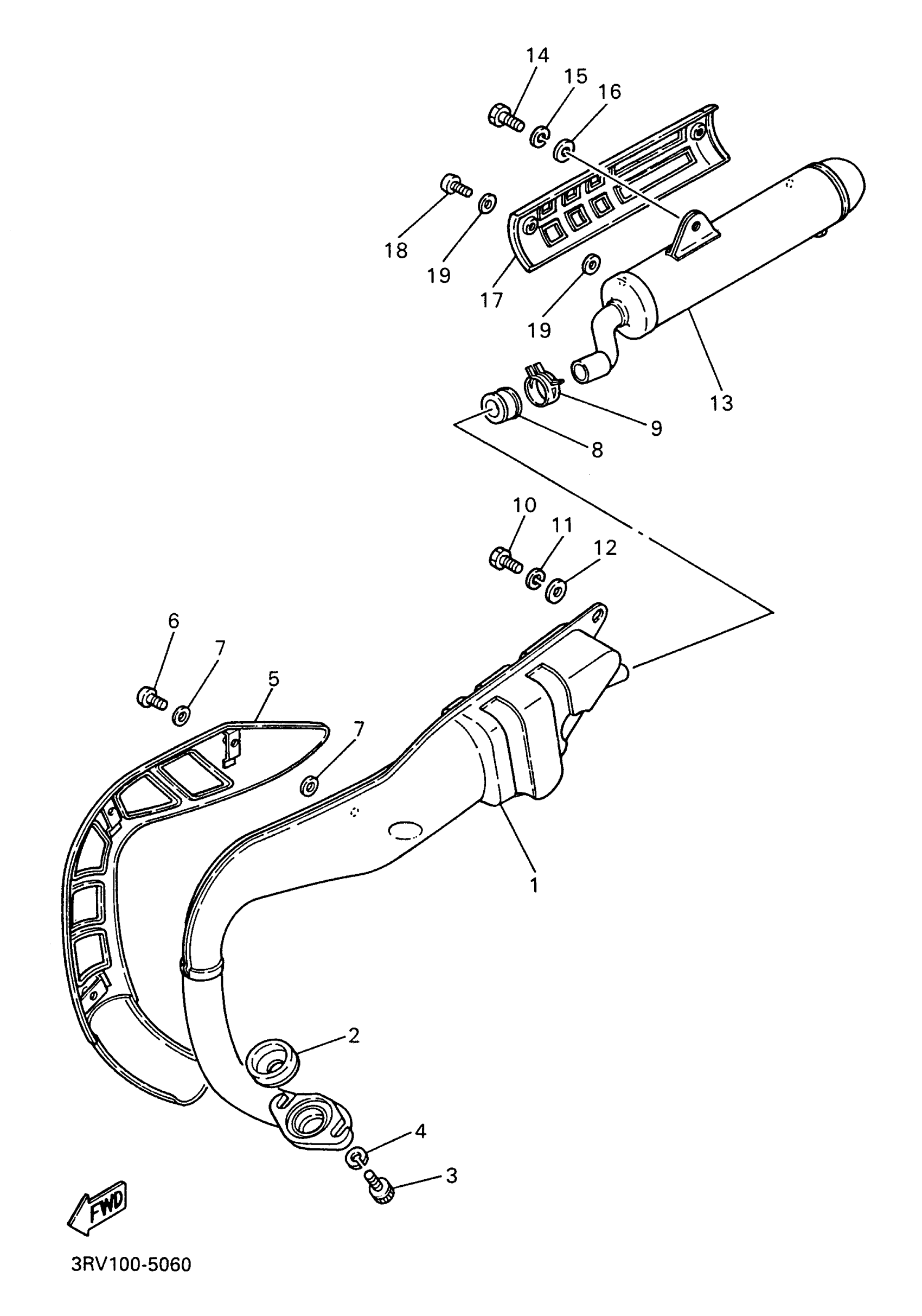 Yamaha PW80J (Y-ZINGER) 3RVA 1997 EXHAUST Diagram