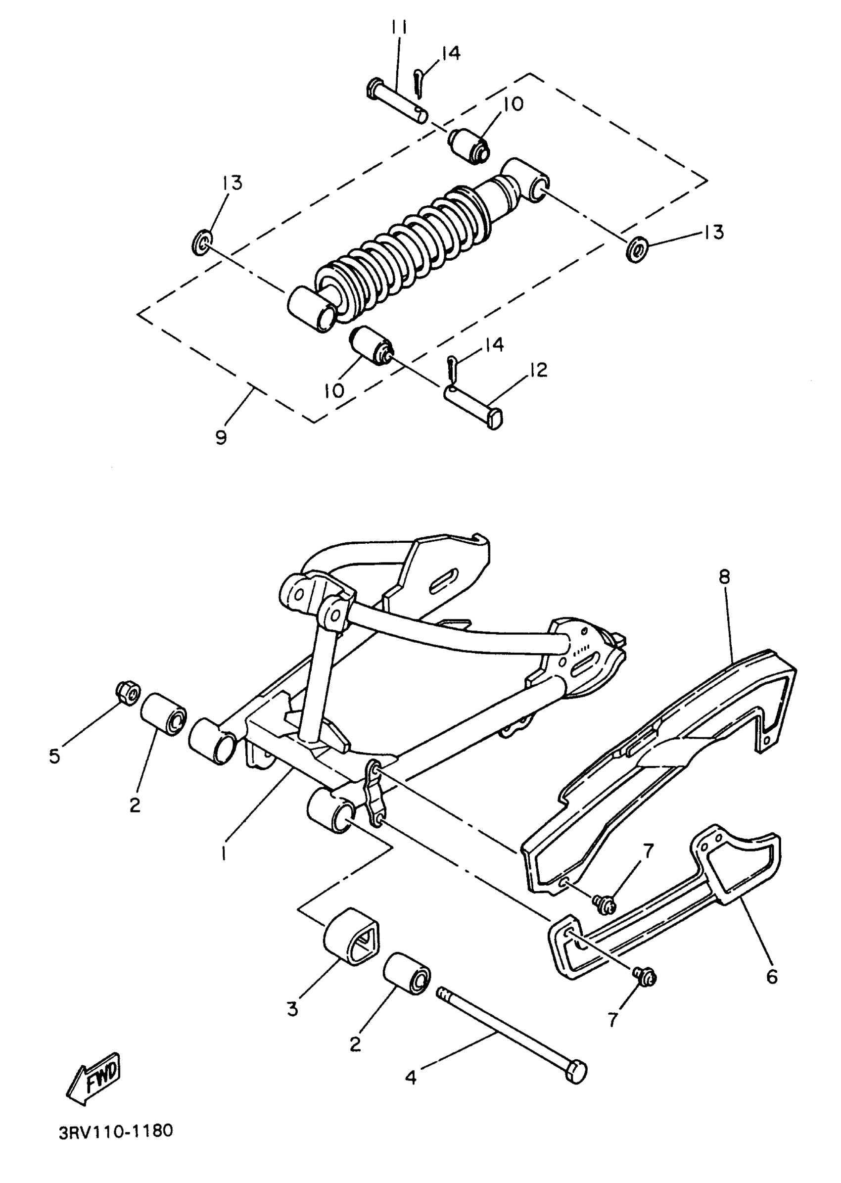 Yamaha PW80J (Y-ZINGER) 3RVA 1997 REAR ARM - SUSPENSION Diagram