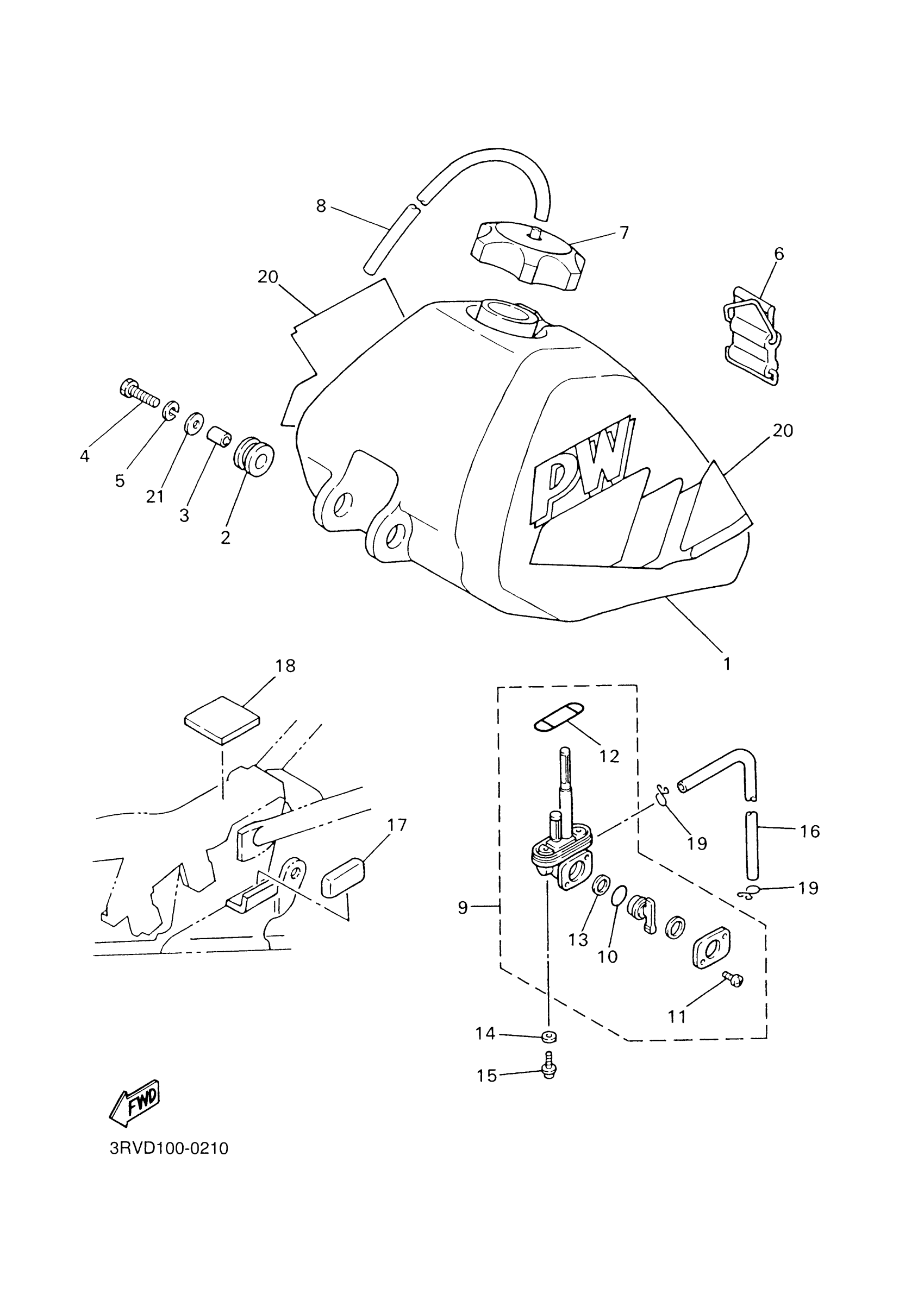 Yamaha PW80M1 (Y-ZINGER) 3RVD 2000 FUEL TANK Diagram