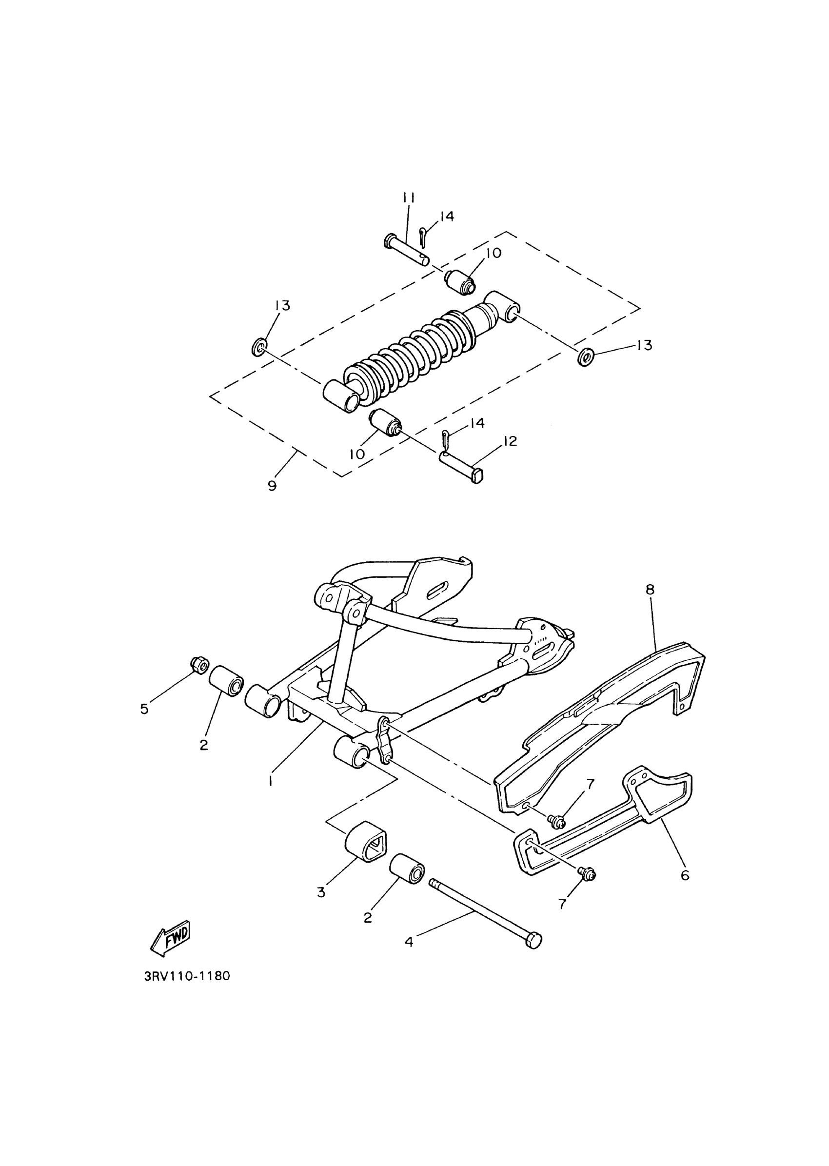 Yamaha PW80M1 (Y-ZINGER) 3RVD 2000 REAR ARM SUSPENSION Diagram