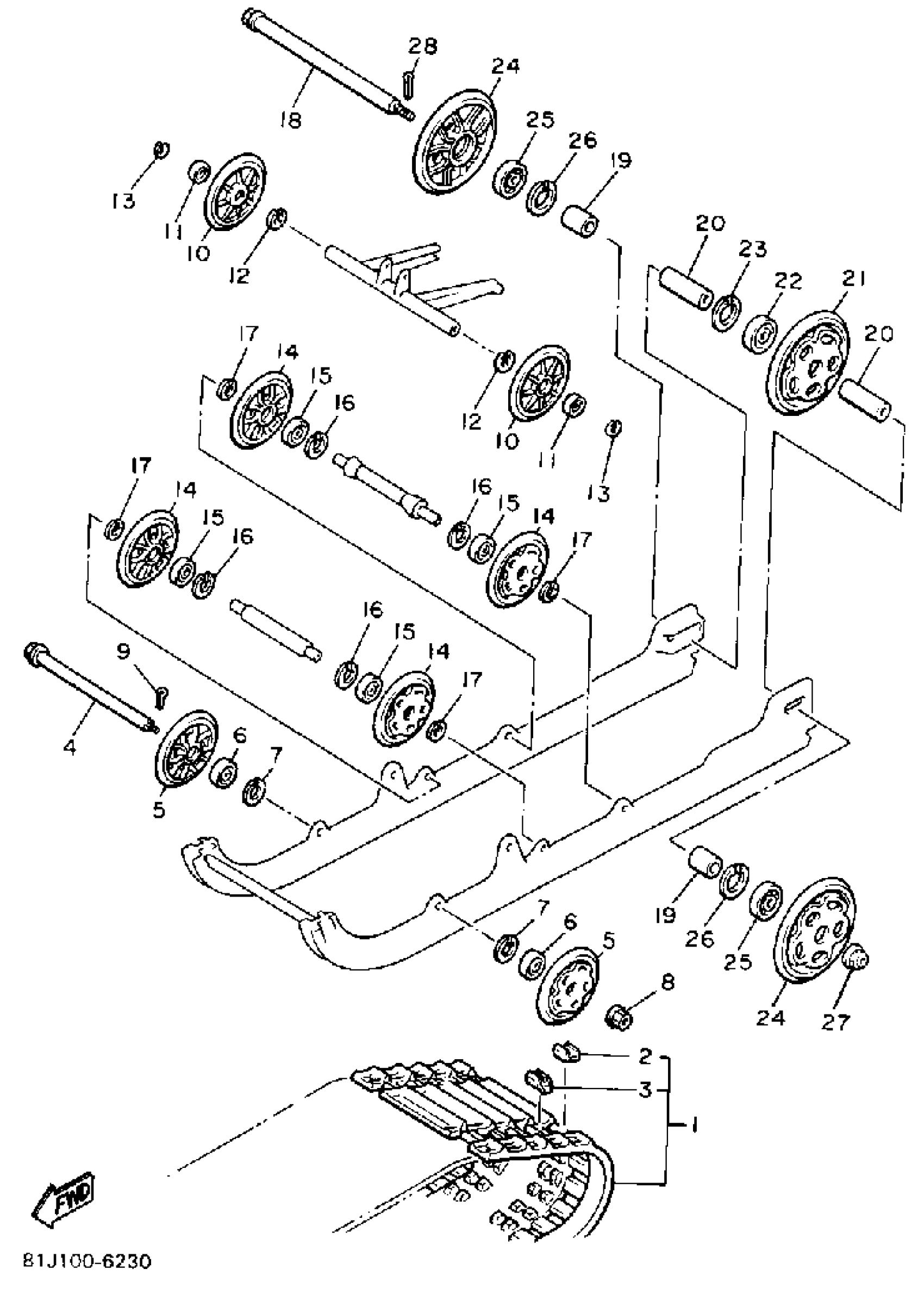Yamaha PZ480EL (PHAZER DELUXE (ELEC START)) 1987 TRACK SUSPENSION 1 Diagram