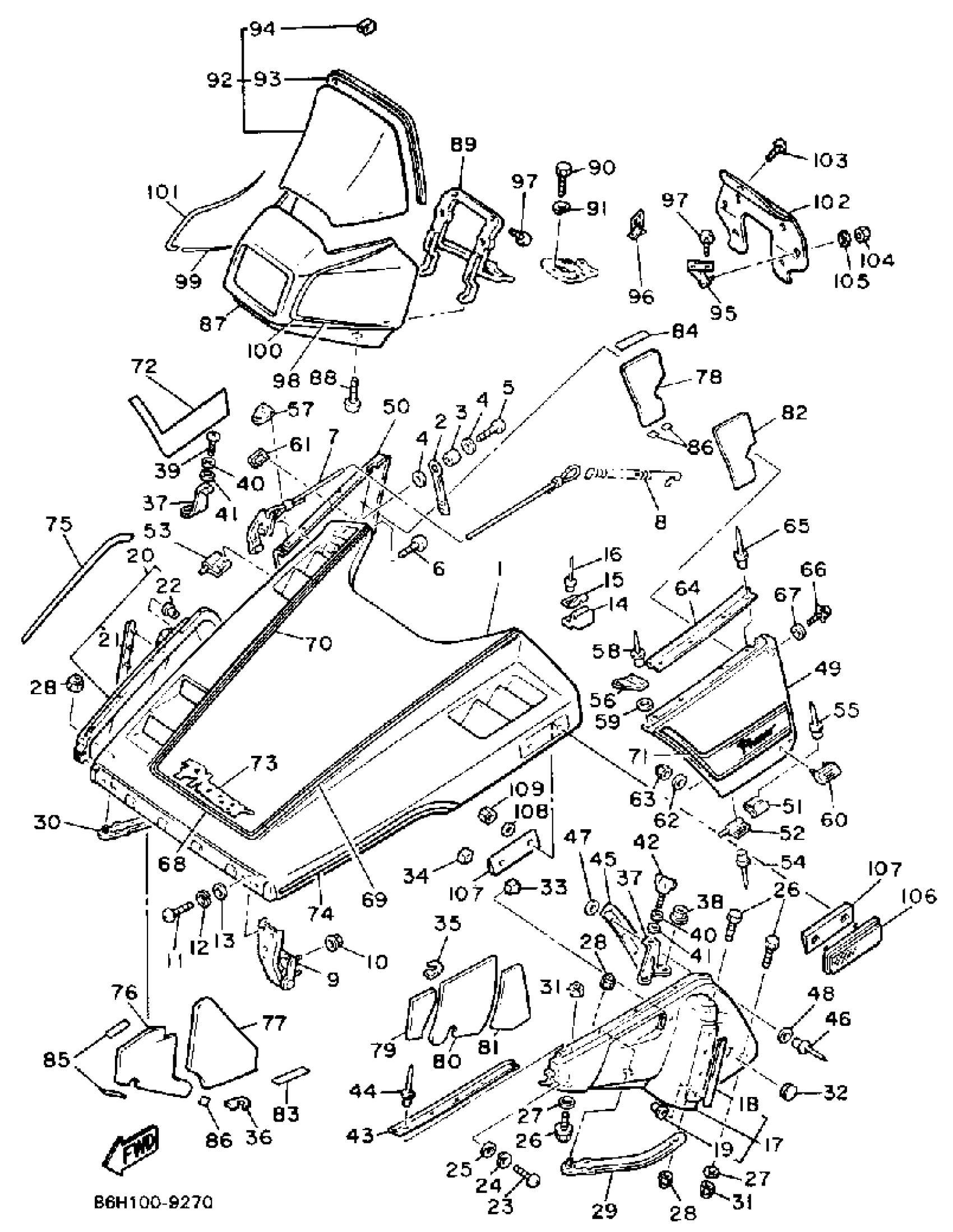 Yamaha PZ480EN (PHAZER DELUXE (ELEC START)) 86H1 1989 SHROUD WINDSHIELD Diagram