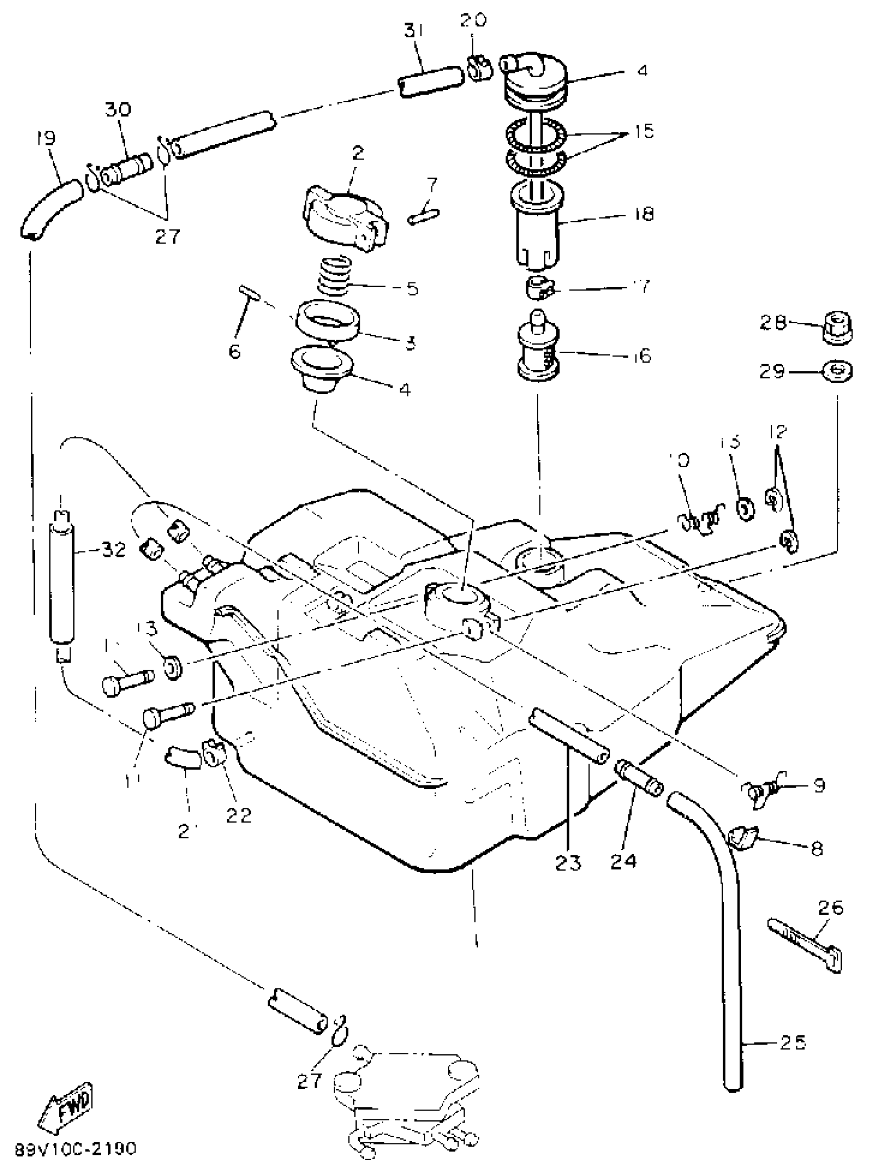 Yamaha PZ480STS (PHAZER II ST) 89G1 1992 FUEL TANK Diagram