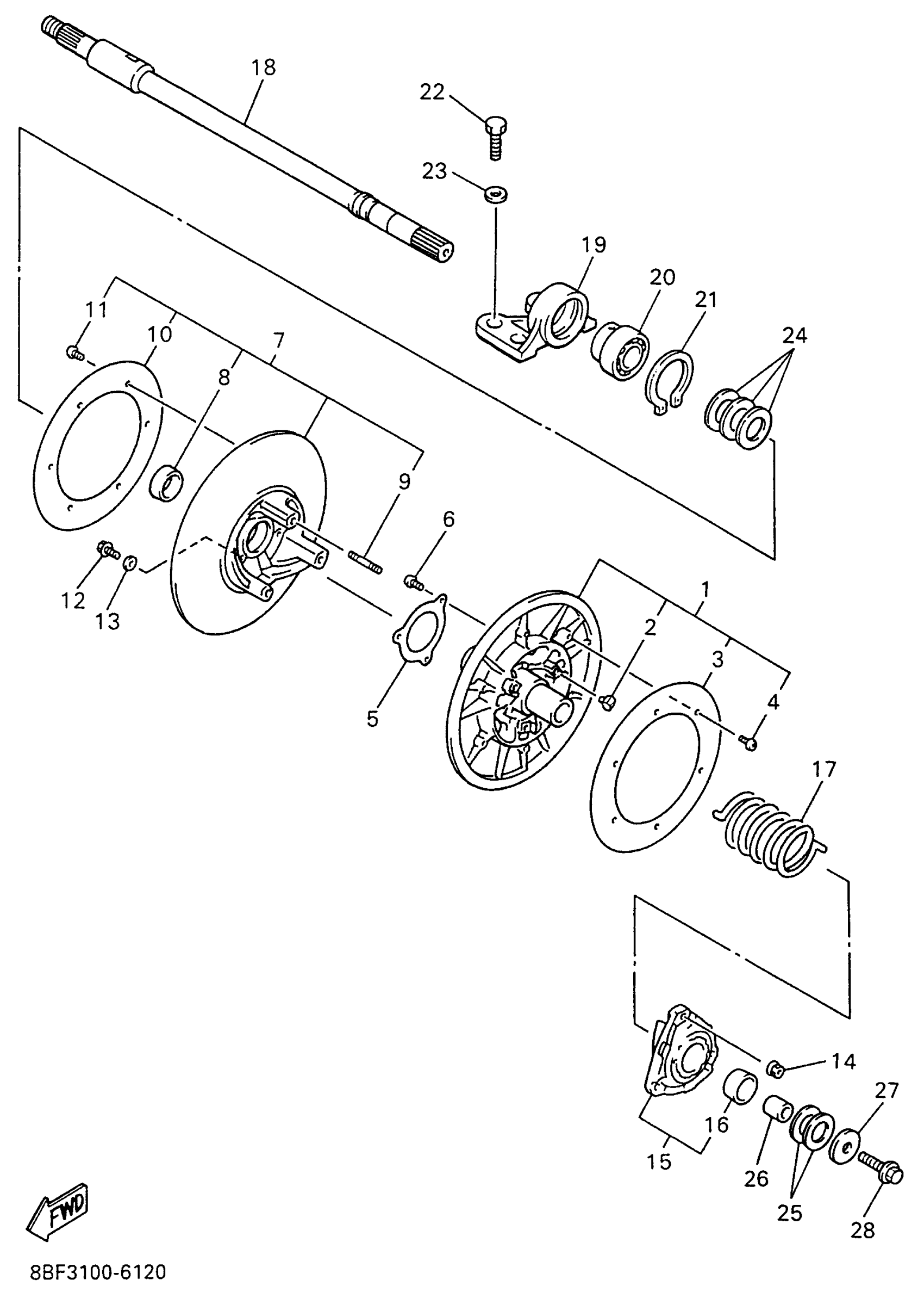 Yamaha PZ480W (PHAZER II) 8BF3 1996 SECONDARY SHEAVE Diagram