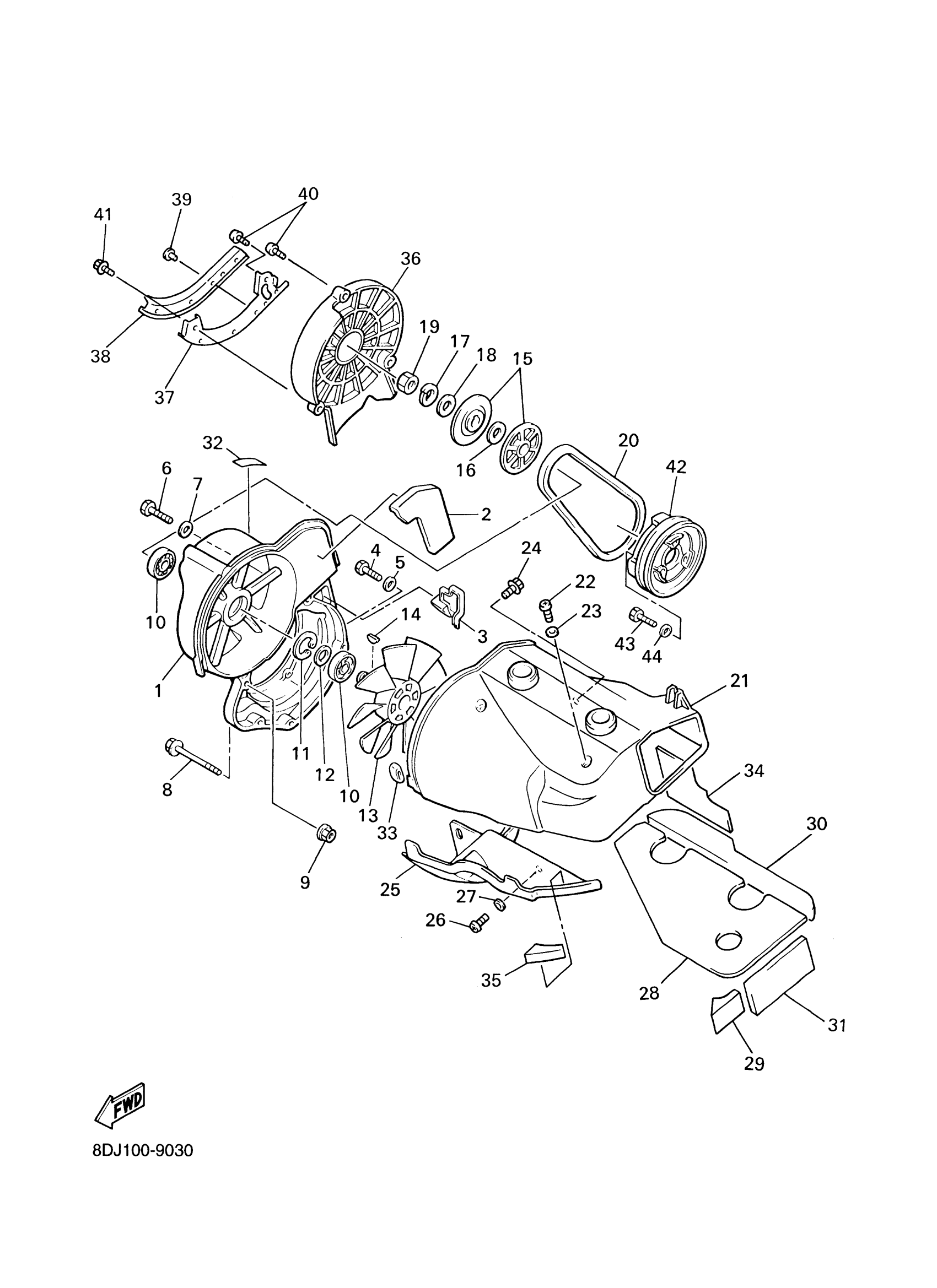 Yamaha PZ500DXF (PHAZER 500 DELUXE (ELEC START)) 8EM1 2001 AIR SHROUD. FAN Diagram