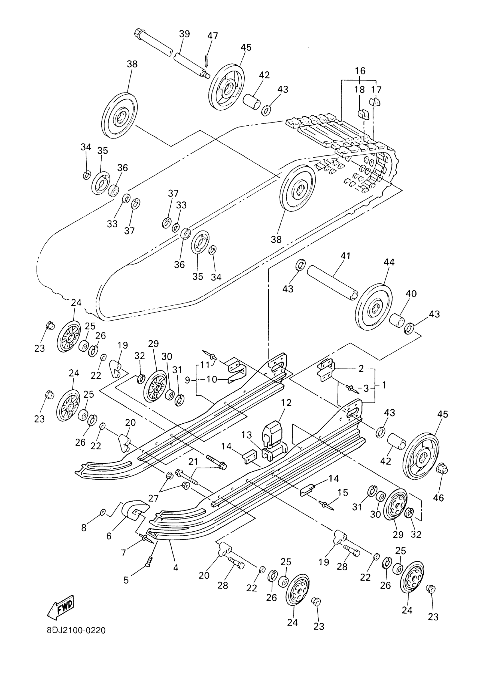 Yamaha PZ500F (PHAZER 500) 8DJ3 2001 TRACK SUSPENSION 1 Diagram
