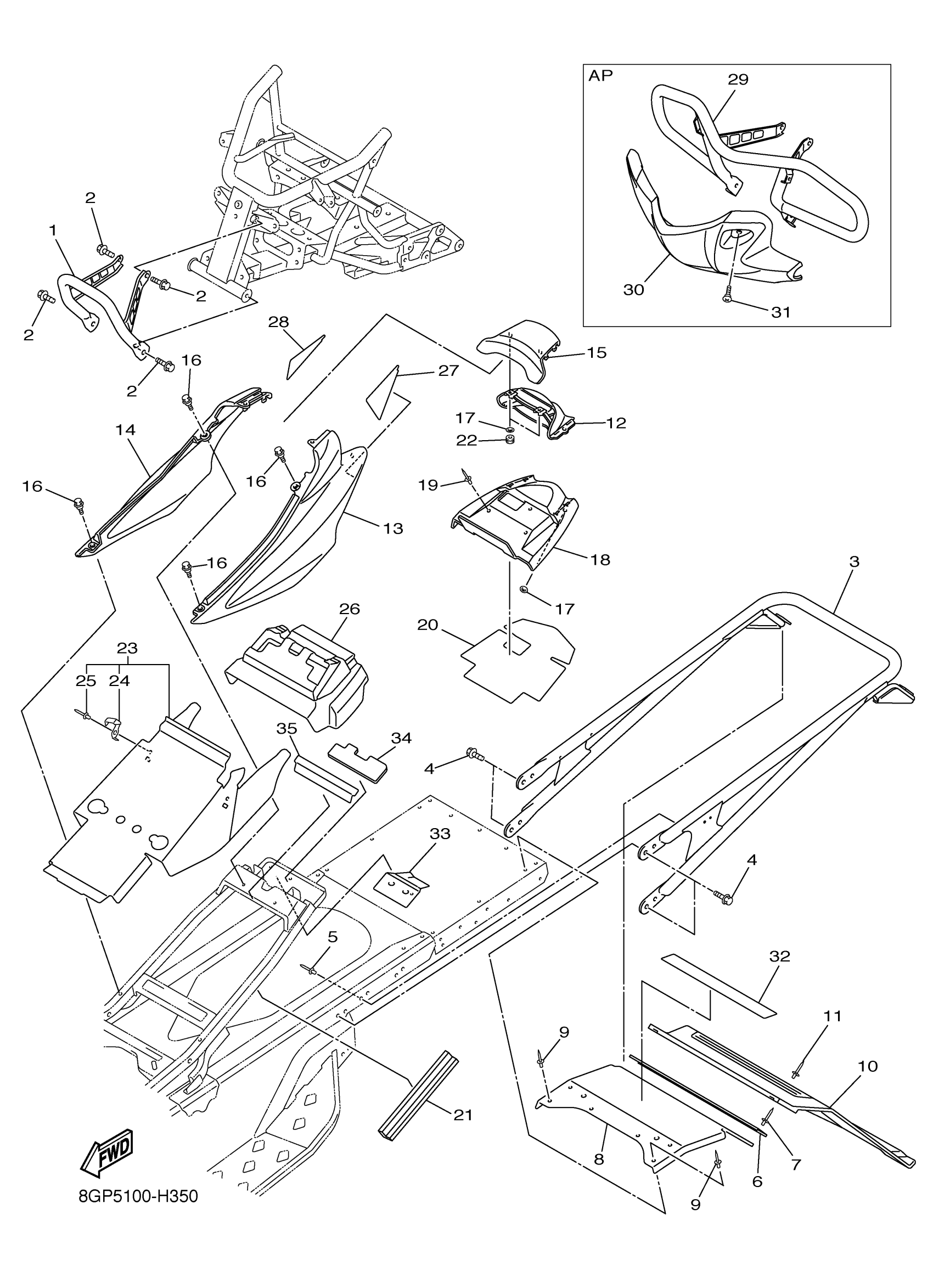 Yamaha PZ50MTYW (PHAZER MTX) 8GP50 2009 BUMPER Diagram