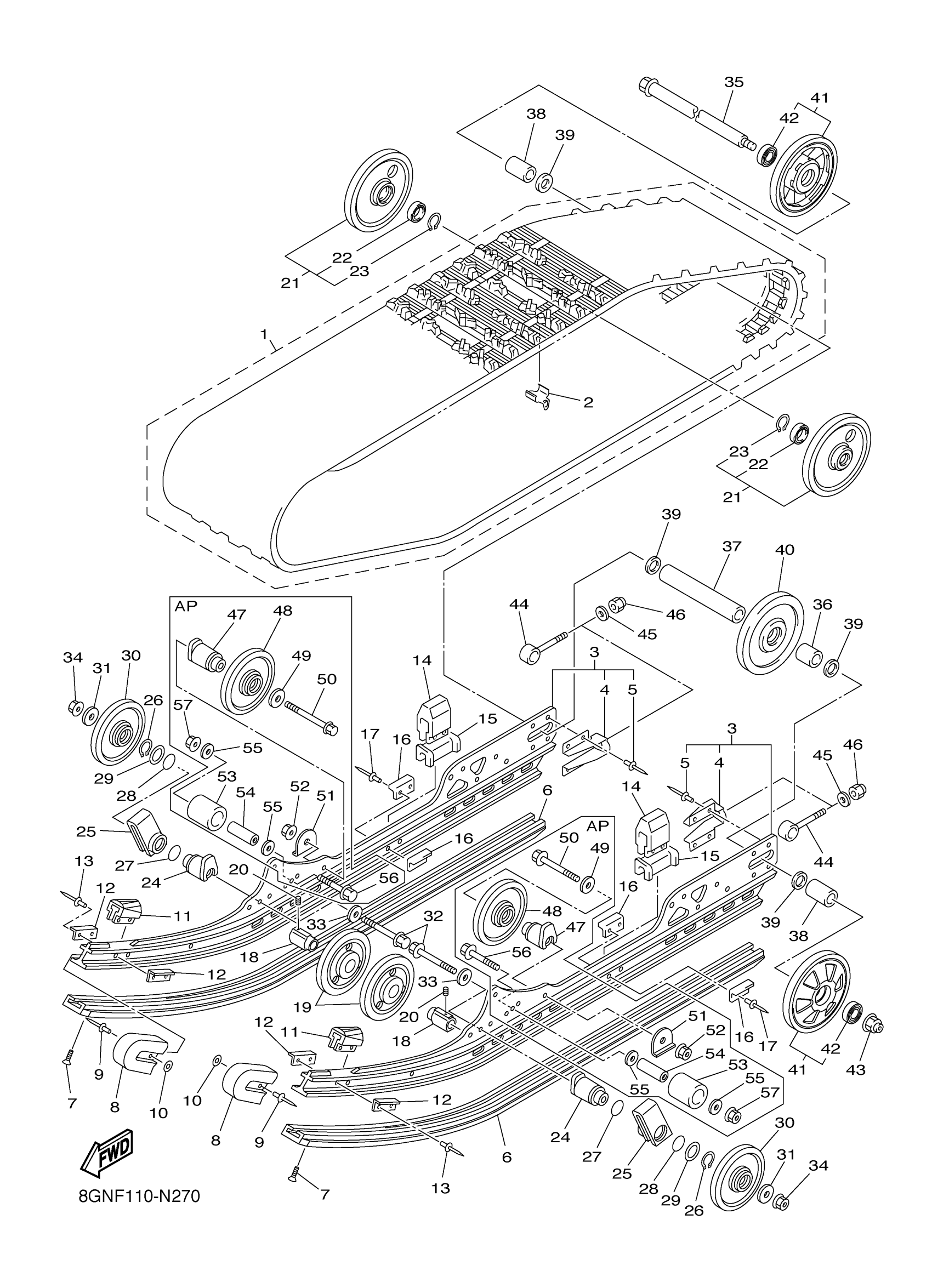 Yamaha PZ50RTGB (PHAZER RTX) 8GNK 2016 TRACK SUSPENSION 1 Diagram