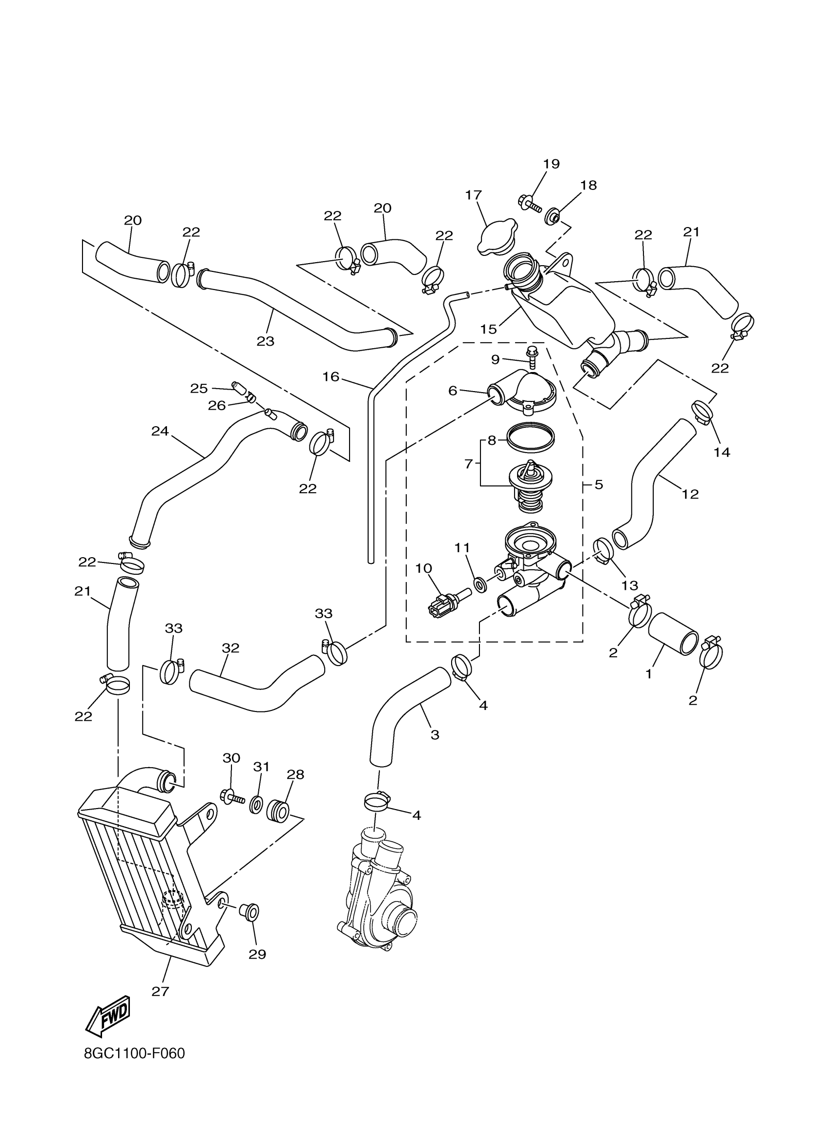 Yamaha PZ50W (PHAZER) 8GC1 2007 RADIATOR HOSE Diagram